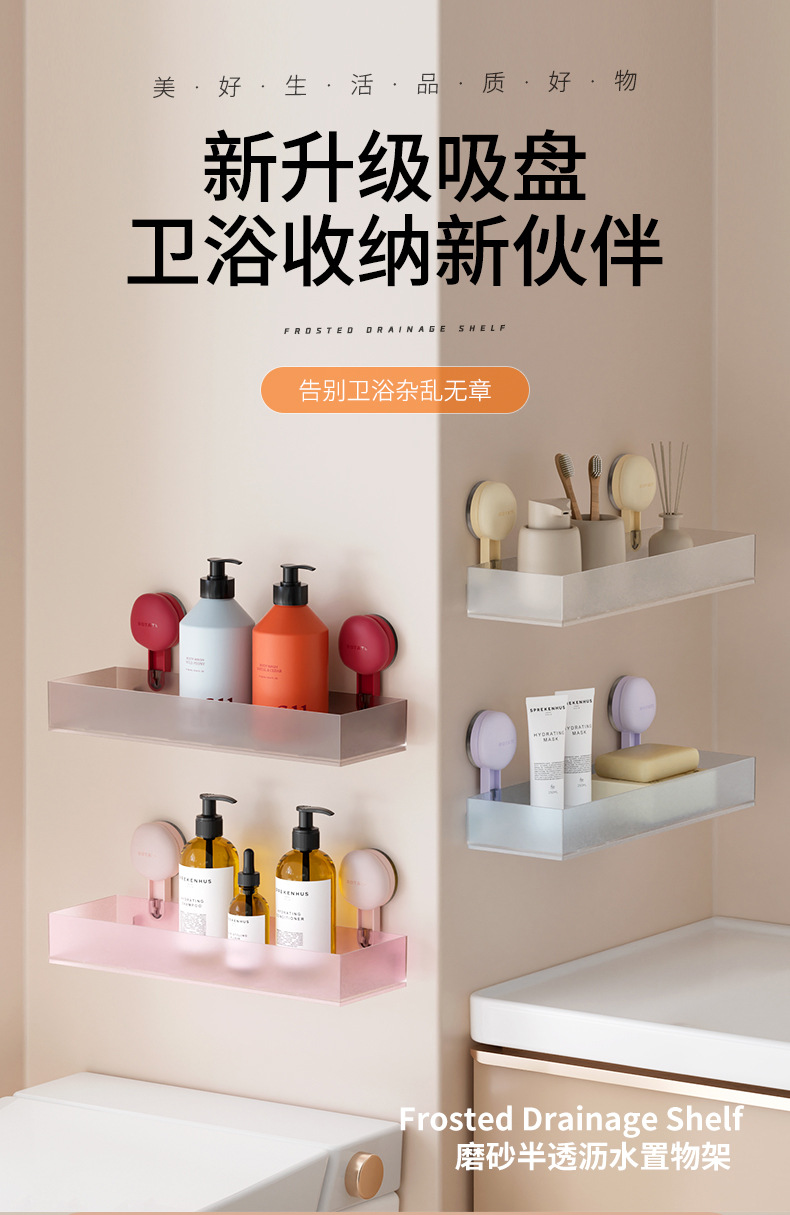 마카롱 반투명 수납 선반 욕실 펀치 프리 벽걸이 흡입 컵 수납 선반 욕실 싱크대 수납 상자스토어 가기