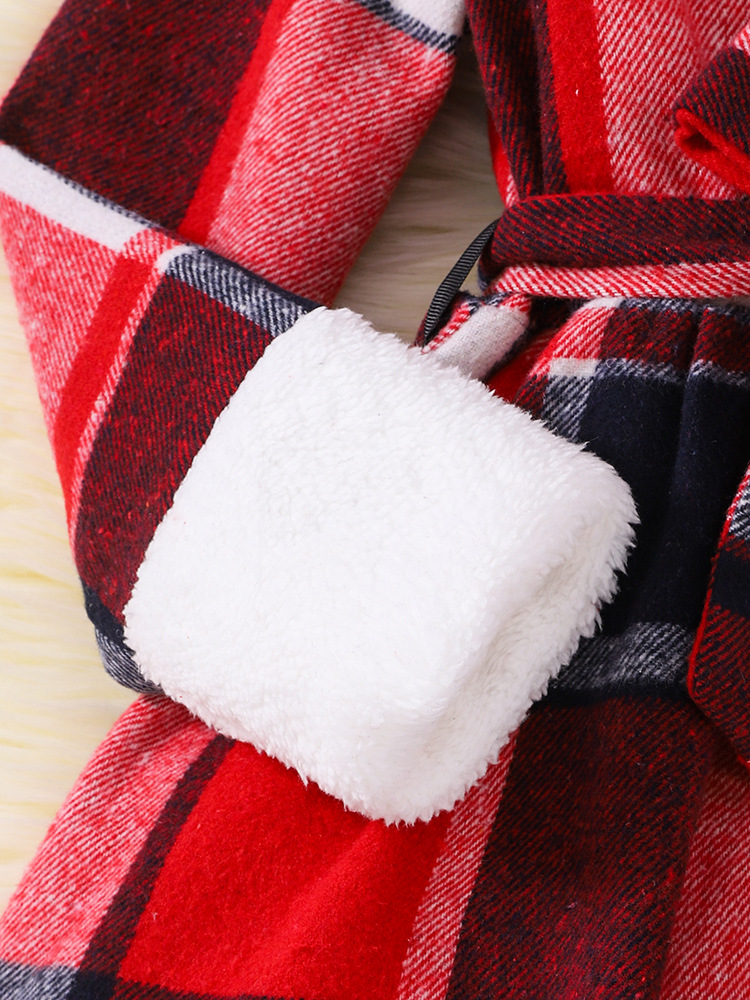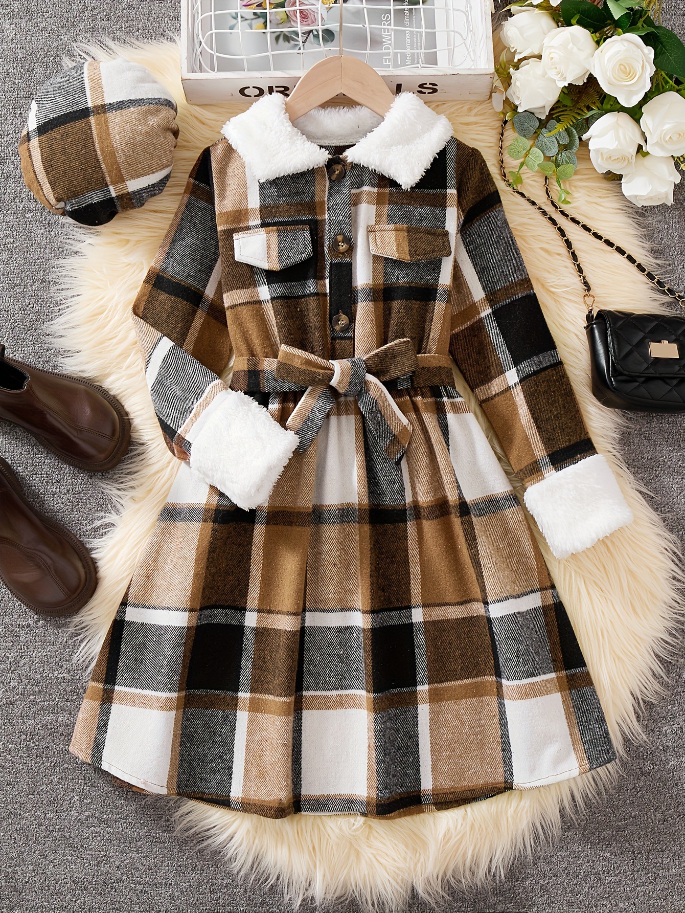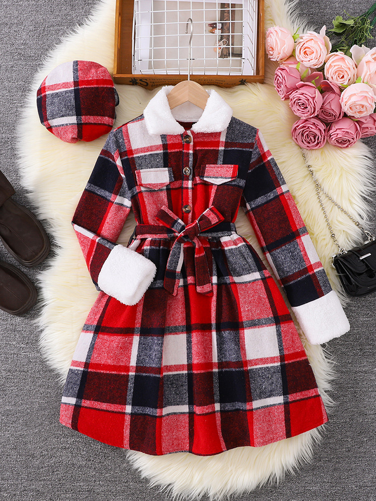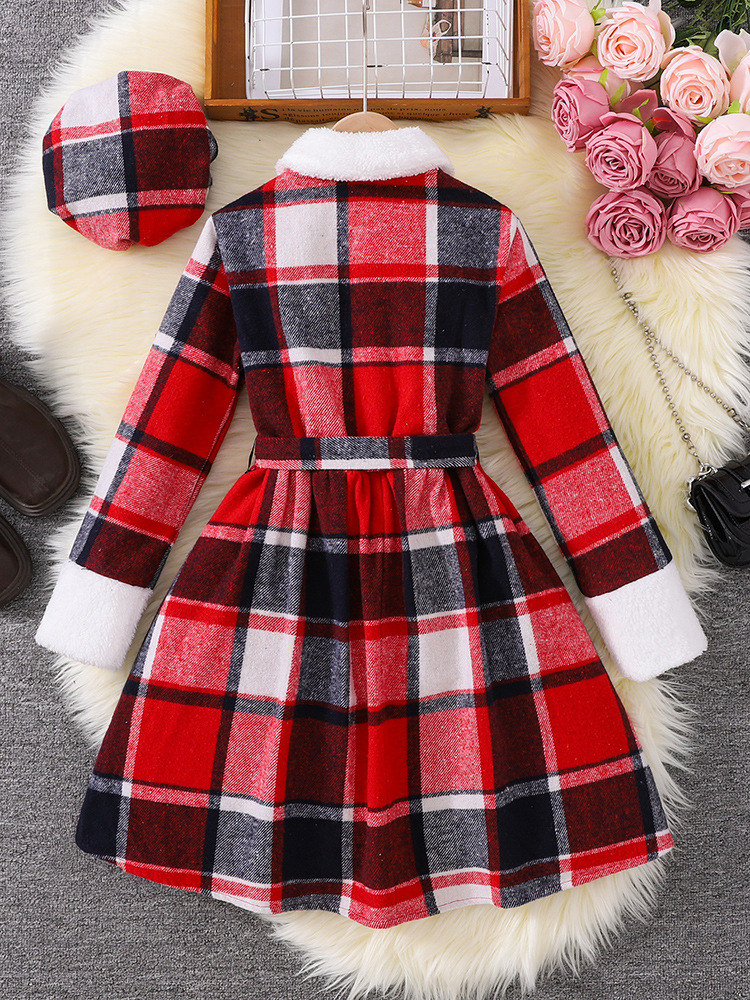 8-12세 여아를 위한 크로스보더 대외 무역 영국식 긴팔 스탠드 칼라 체크무늬 드레스와 모자 2피스 세트스토어 가기