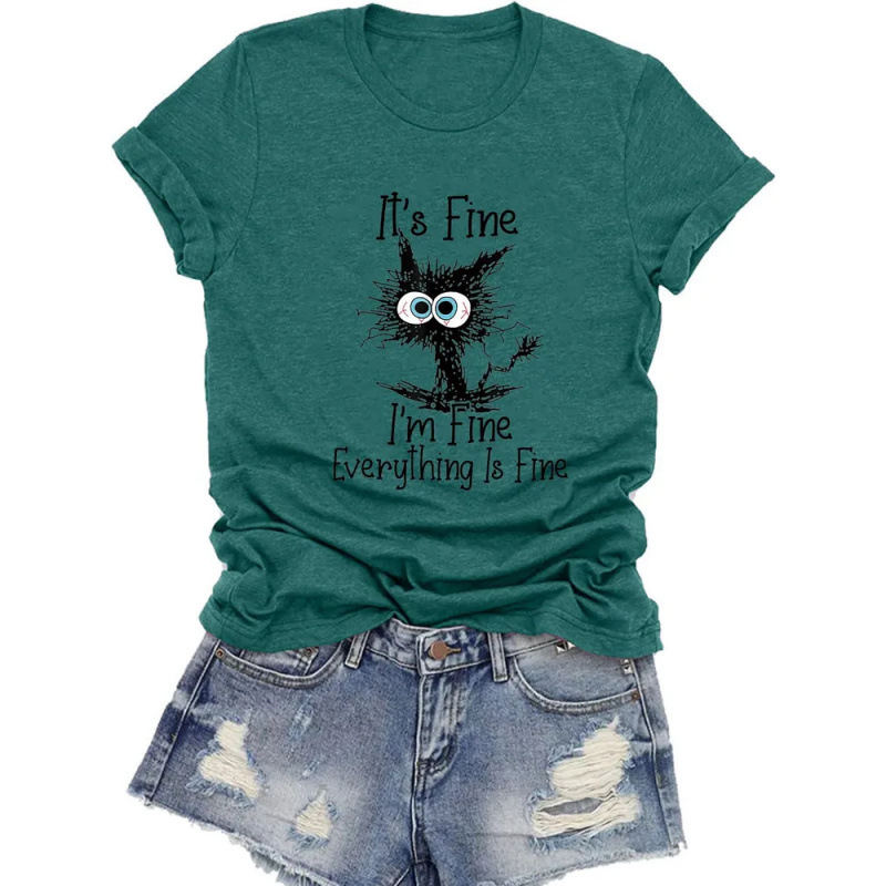 대외 무역 여성상의 크로스 경영 전자 상거래 Amazon 고양이 프린트 반팔 티셔츠