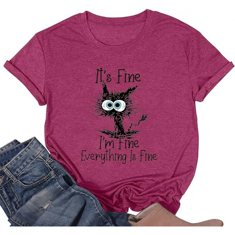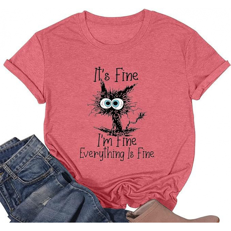 대외 무역 여성상의 크로스 경영 전자 상거래 Amazon 고양이 프린트 반팔 티셔츠스토어 가기