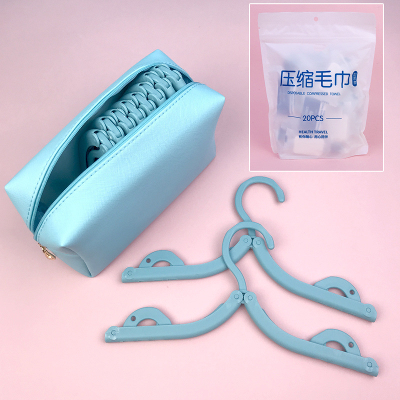 • 파란색 가방 + 파란색 접이식 옷걸이 10개 + 압축 수건 1팩