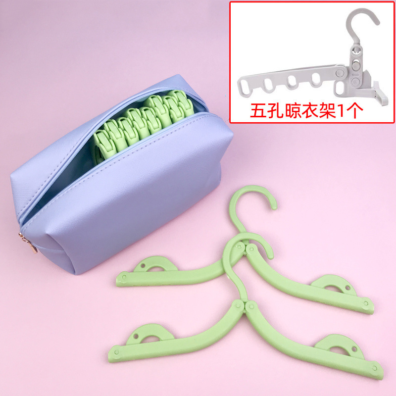 • 연한 보라색 가방 + 녹색 옷걸이 10개 + 5구 옷 건조대 1개