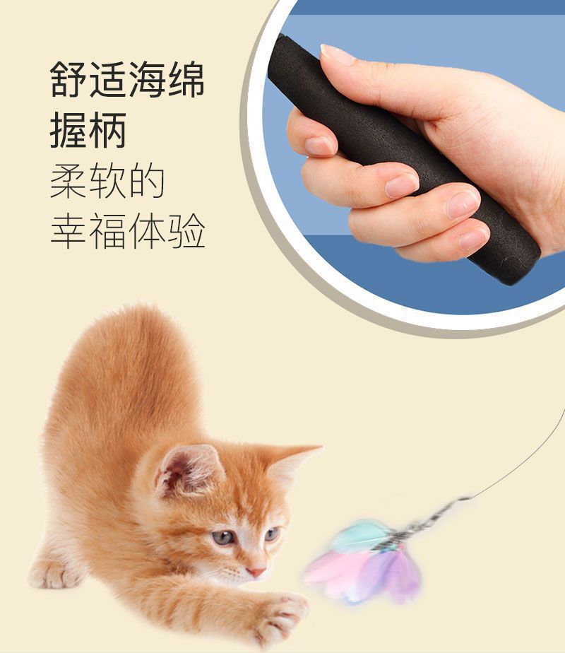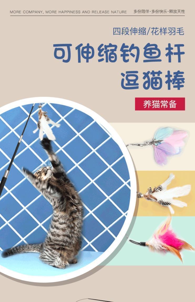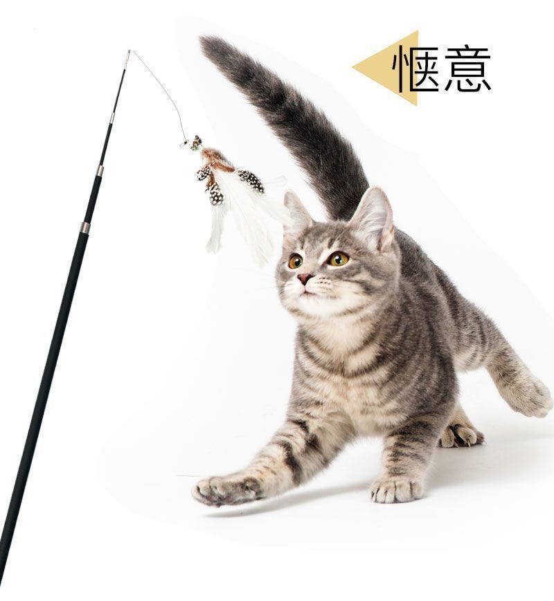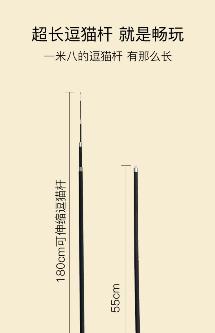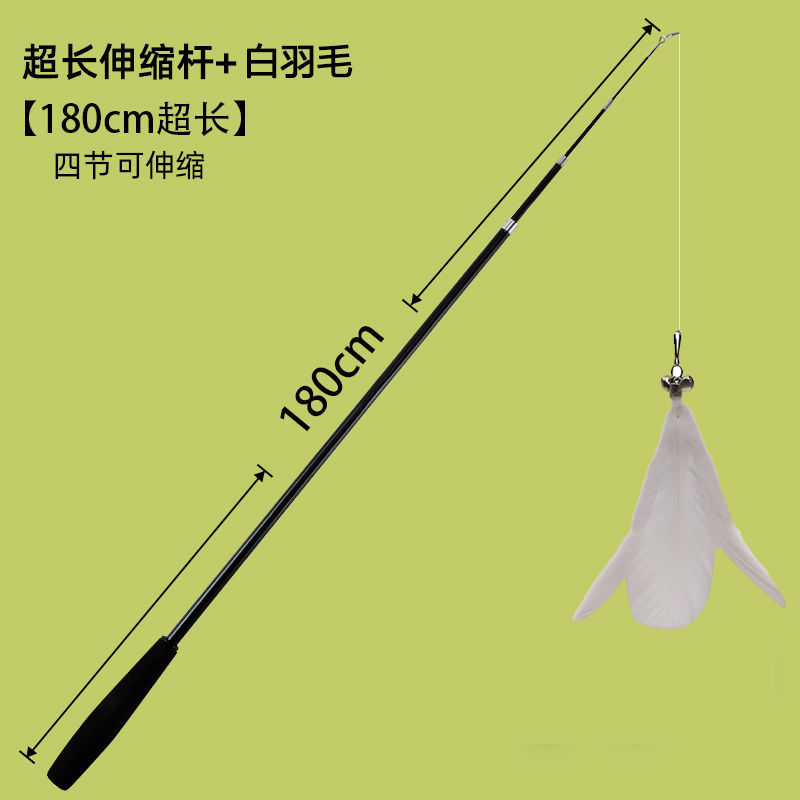 고양이 장난감, 고양이 놀리는 막대, 긴 막대, 4단 개폐식 1.8m, 매우 긴 깃털 교체 헤드, 고양이와 새끼 고양이를 물어뜯는 것을 방지하는 용품스토어 가기