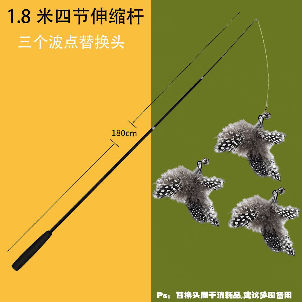 고양이 장난감, 고양이 놀리는 막대, 긴 막대, 4단 개폐식 1.8m, 매우 긴 깃털 교체 헤드, 고양이와 새끼 고양이를 물어뜯는 것을 방지하는 용품