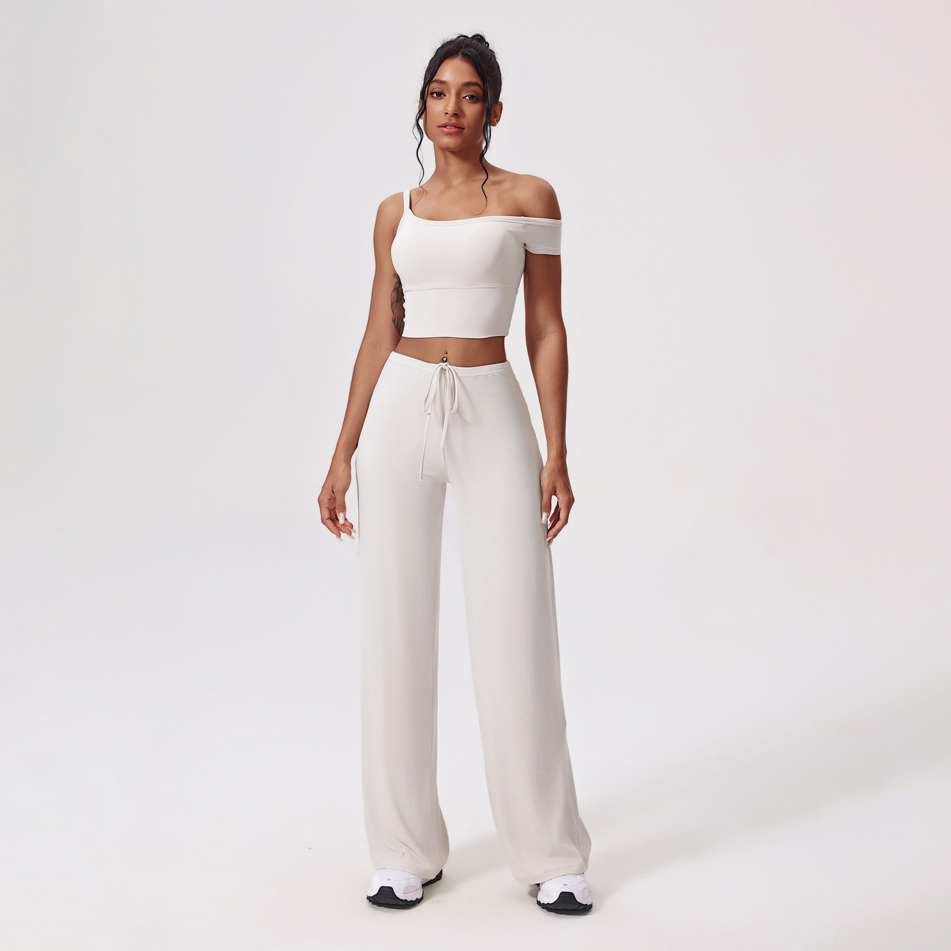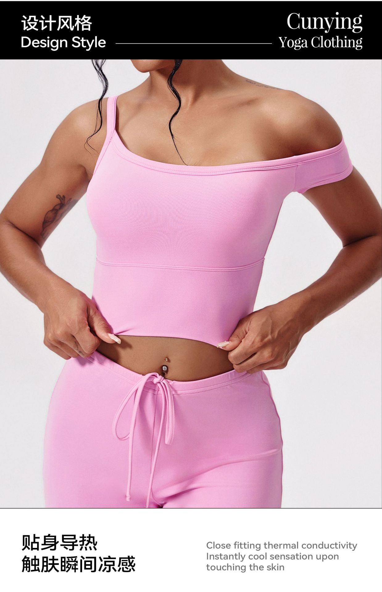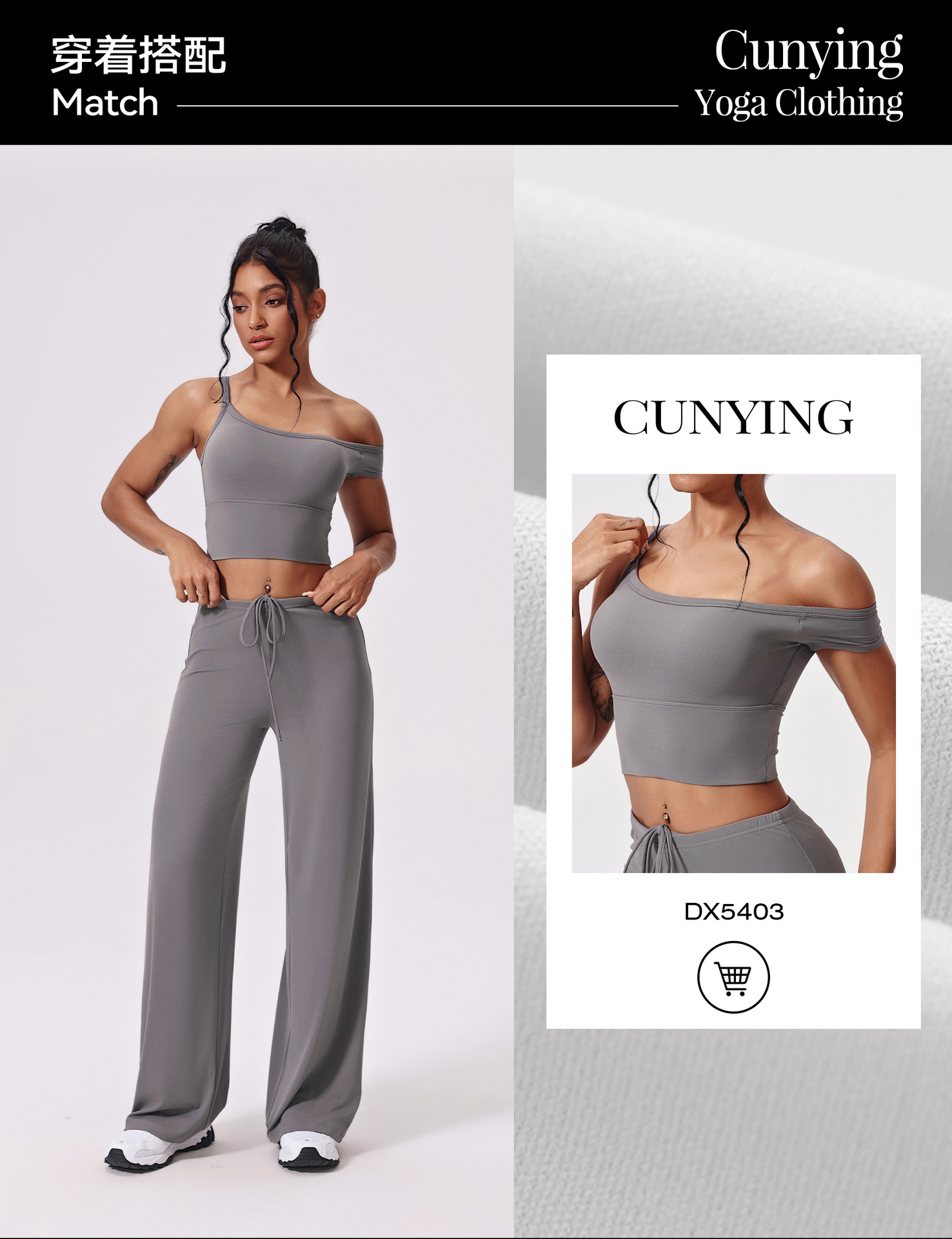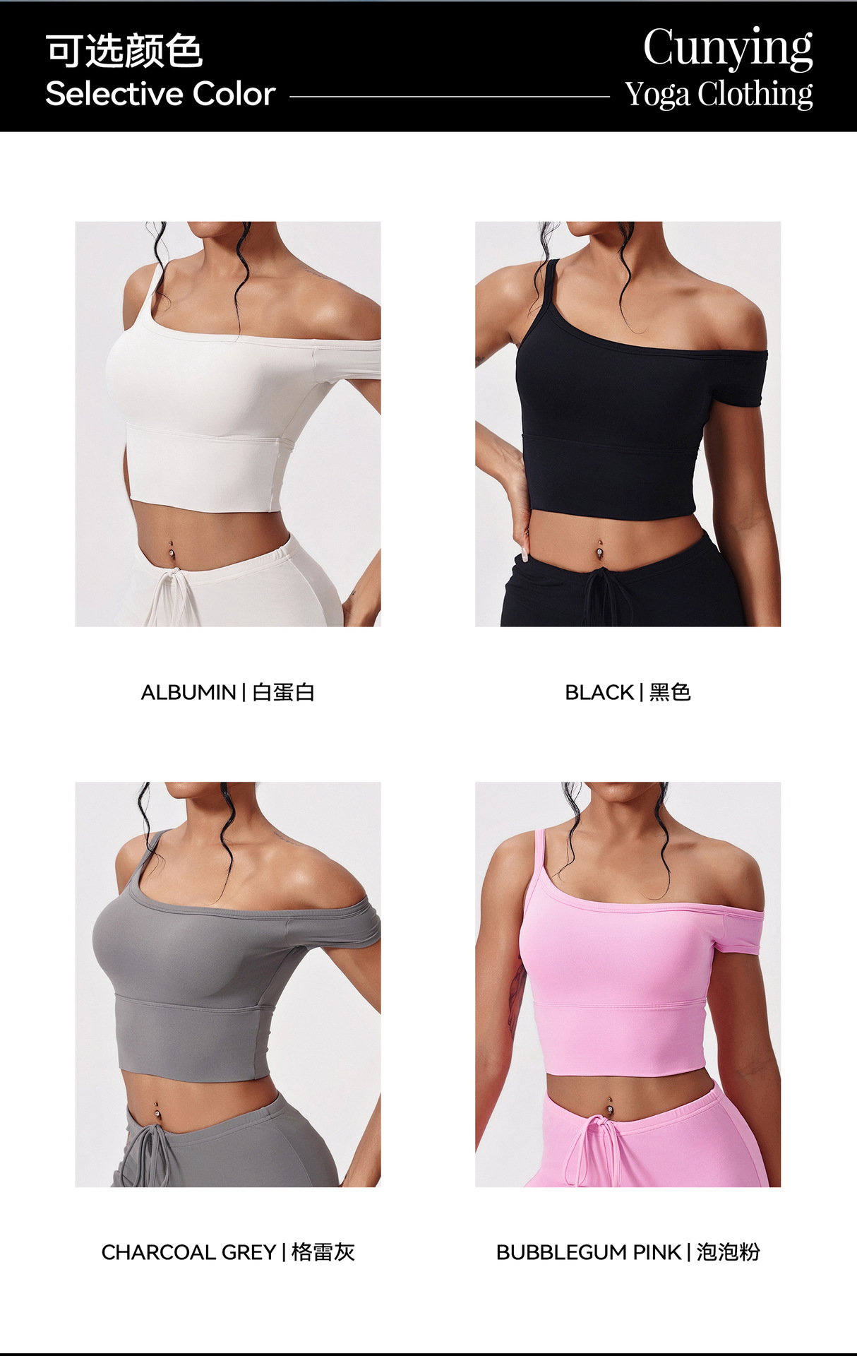Yunsen 국경 간 항균 요가 의류 세트 비스듬한 어깨 꽉 끼는 속건성 피트니스 의류 느슨한 캐주얼 스포츠 정장 여성