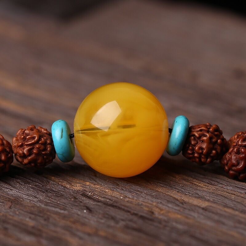 밀랍 싱글 비즈, 둥근 비즈, 닭 기름 노란색 플로팅 플라워, 올드 왁스 싱글 핸드 비즈, 천연 원광석 문화 장식품, 비즈스토어 가기