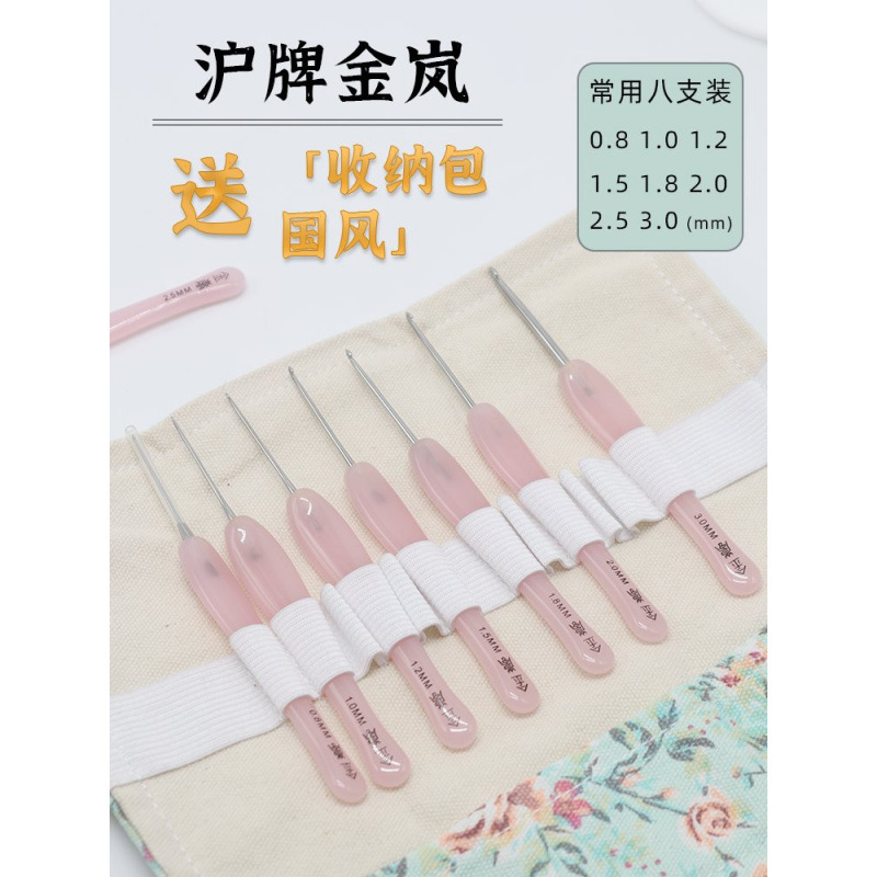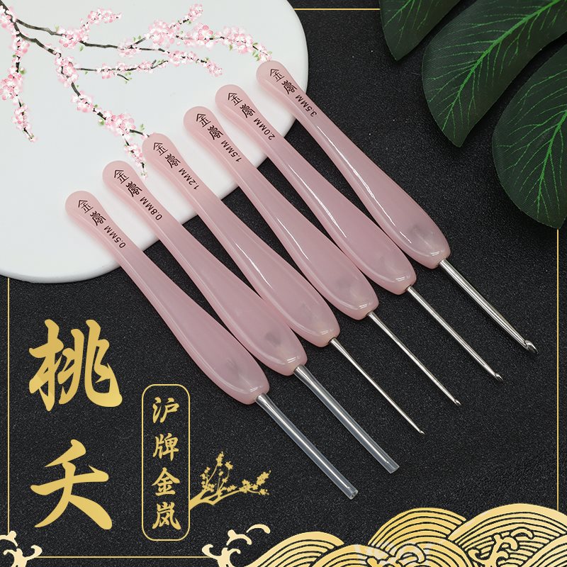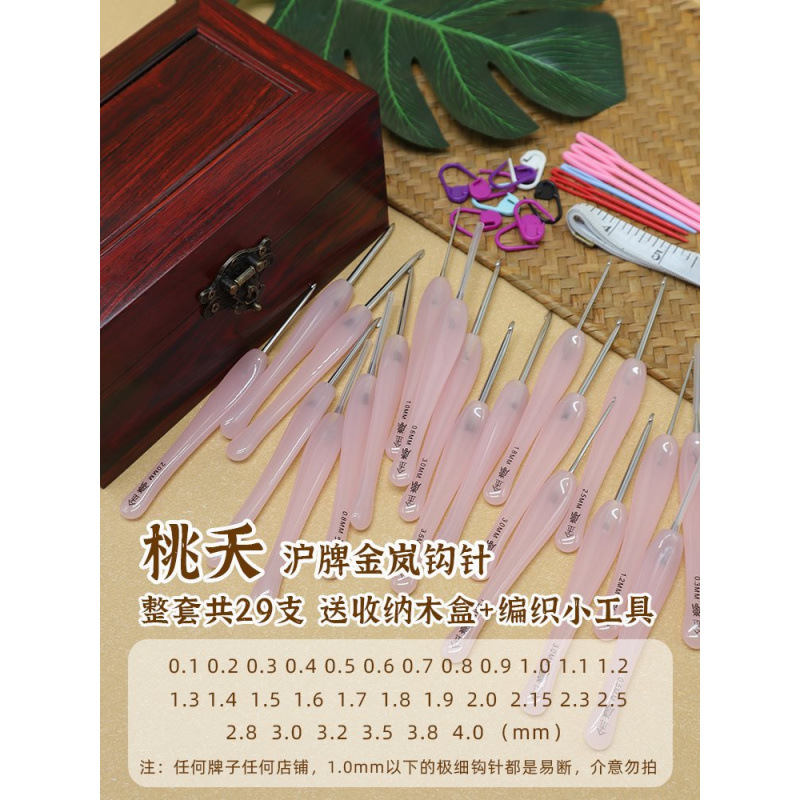 Hulian Jinlan 크로 셰 뜨개질 핑크 복숭아 수지 손잡이 손으로 연마 된 스테인레스 스틸 바늘 양모 뜨개질 도구 세트
