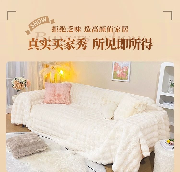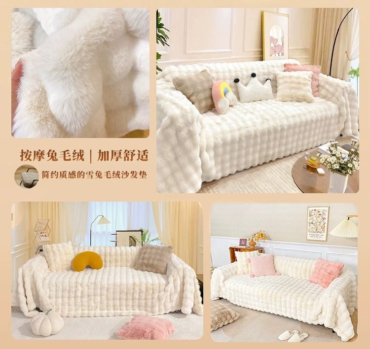 크림 스타일 소파 커버 천, 고양이 긁힘 방지 소파 타월, 겨울 플러시 소파 커버, 모든 항목을 포함하는 범용 소파 담요스토어 가기