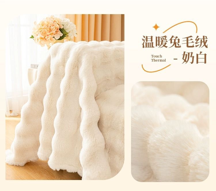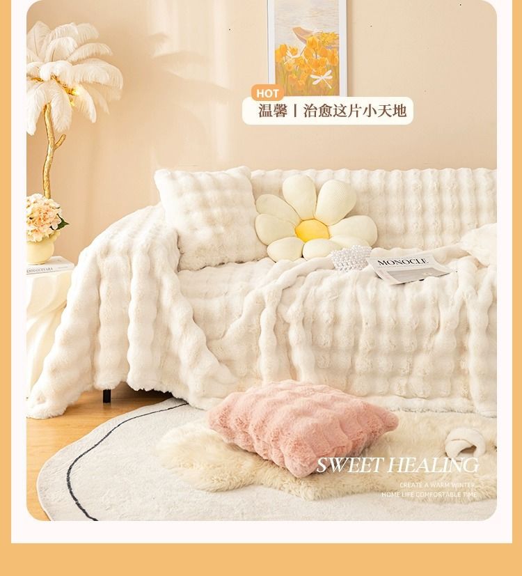• 토끼 플러시 소파 타월 - 밀크 화이트