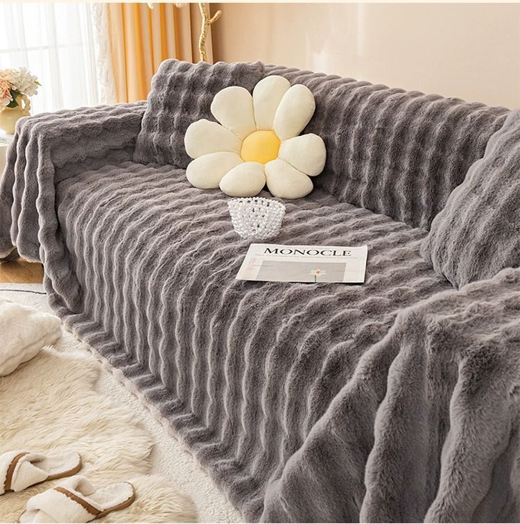 • 토끼 플러시 소파 타월 - 다크 그레이