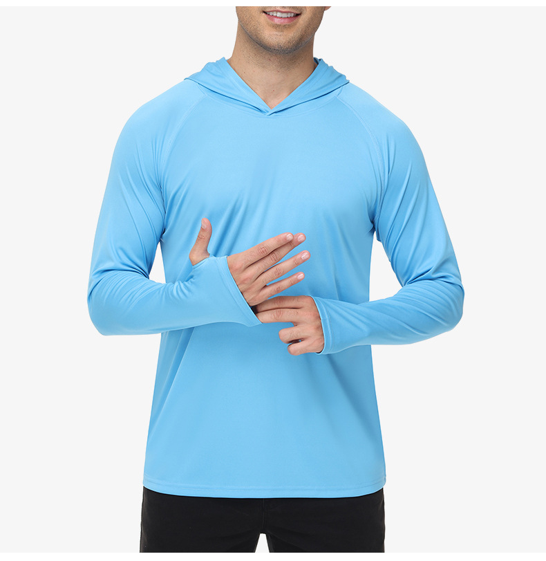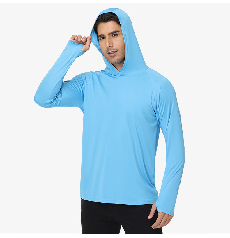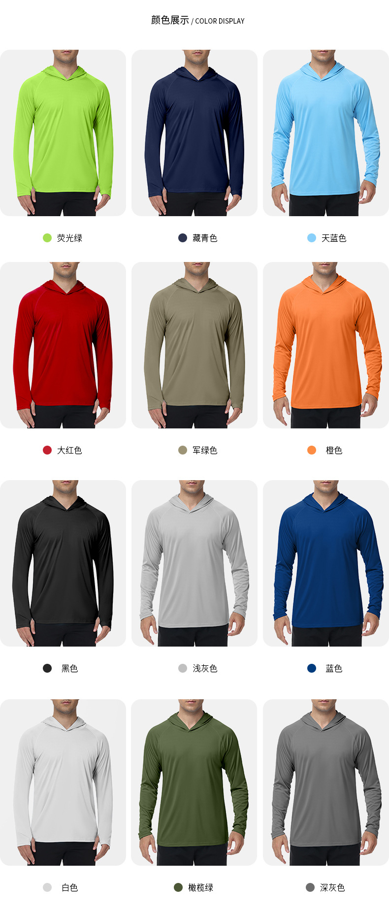 크로스보더 UPF50+ 후드형 자외선 차단 의류, 아웃도어 하이킹 등산 스킨웨어, 낚시복, 자외선 차단 속건성 상의