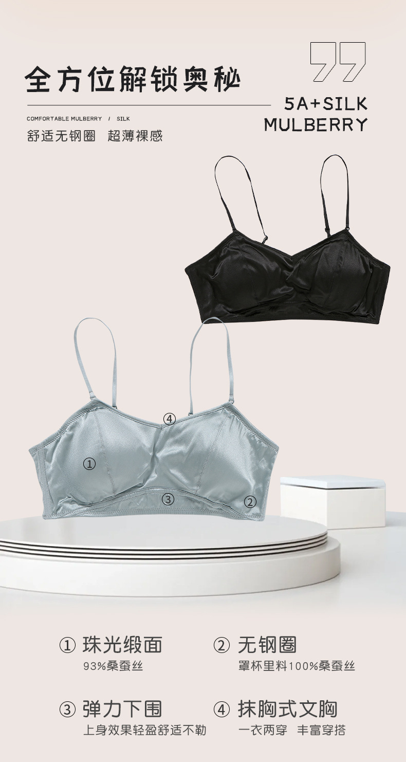 Haosangyuan 실크 진주 빛 초박형 새틴 뽕나무 실크 속옷 양면 실크 튜브 탑 브라 2536