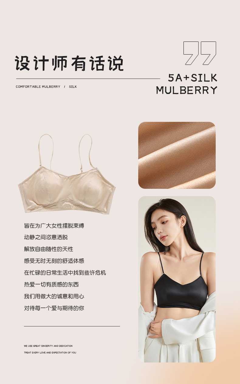 Haosangyuan 실크 진주 빛 초박형 새틴 뽕나무 실크 속옷 양면 실크 튜브 탑 브라 2536스토어 가기