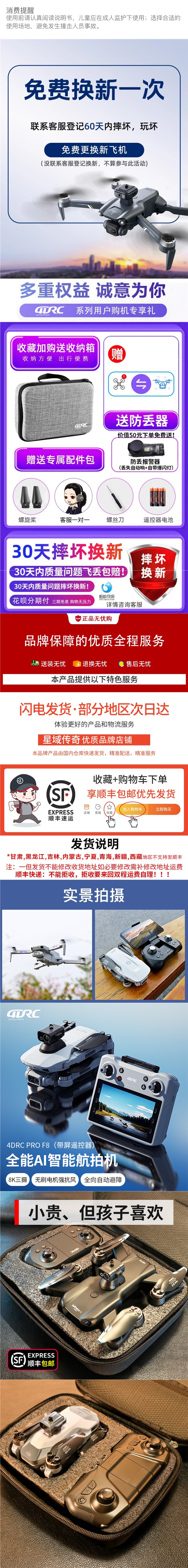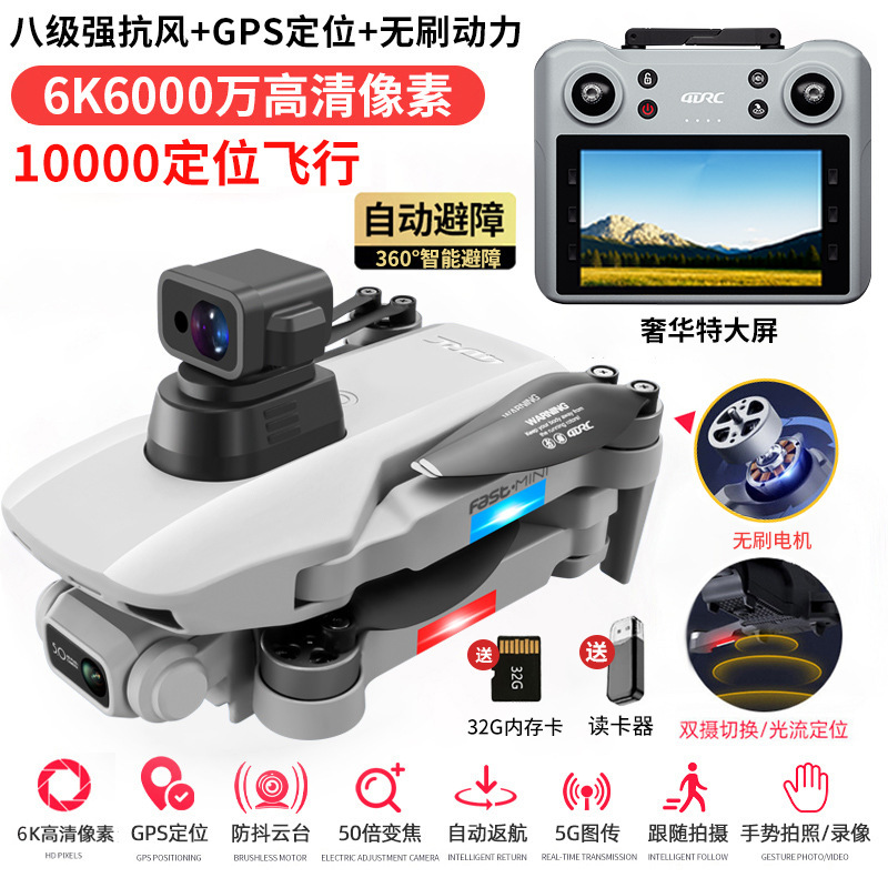 • 화면 제어 럭셔리 버전 {3개 카메라} 고품질 *무료 32G 메모리 카드 [대형 + 전문가 버전] F8-6K+ 10000m + 듀얼 카메라 + 전자 조정식 짐벌