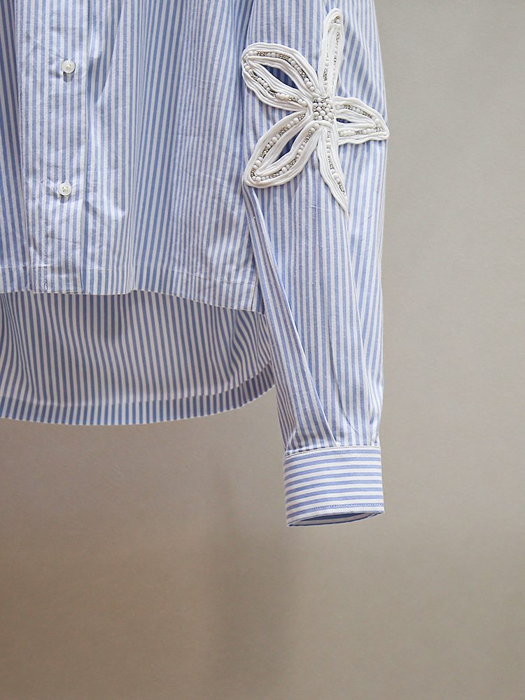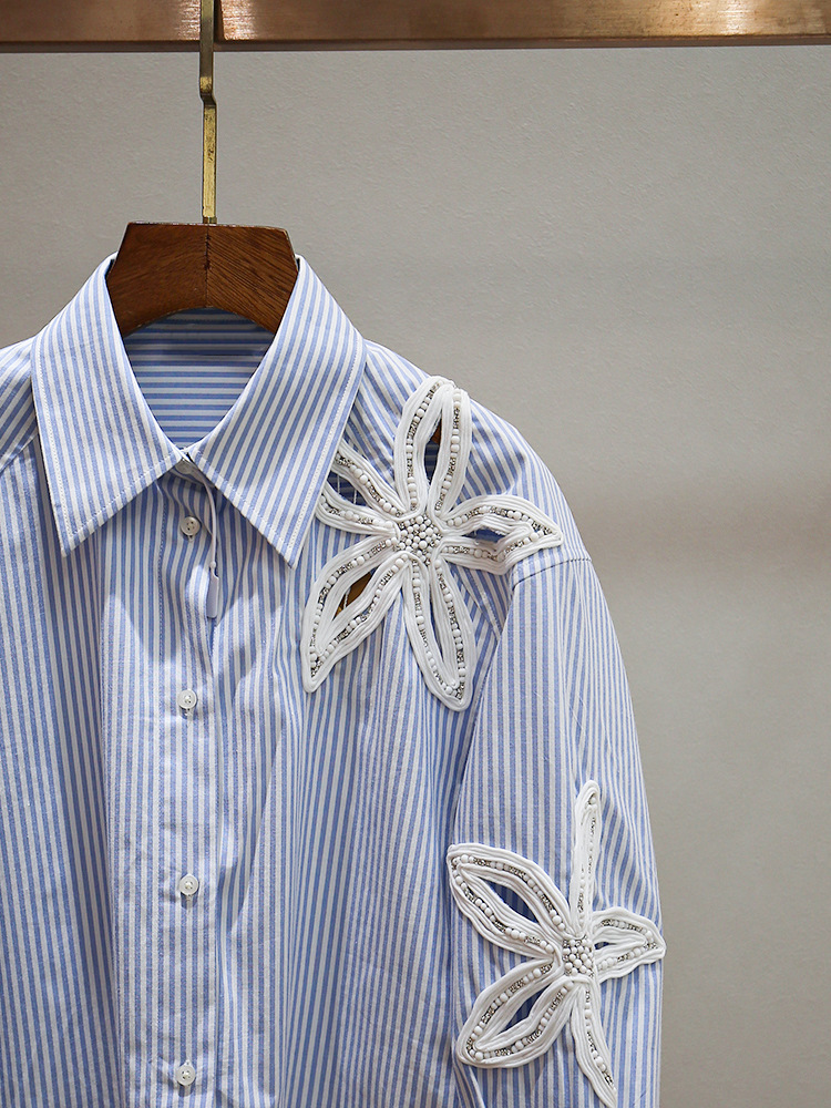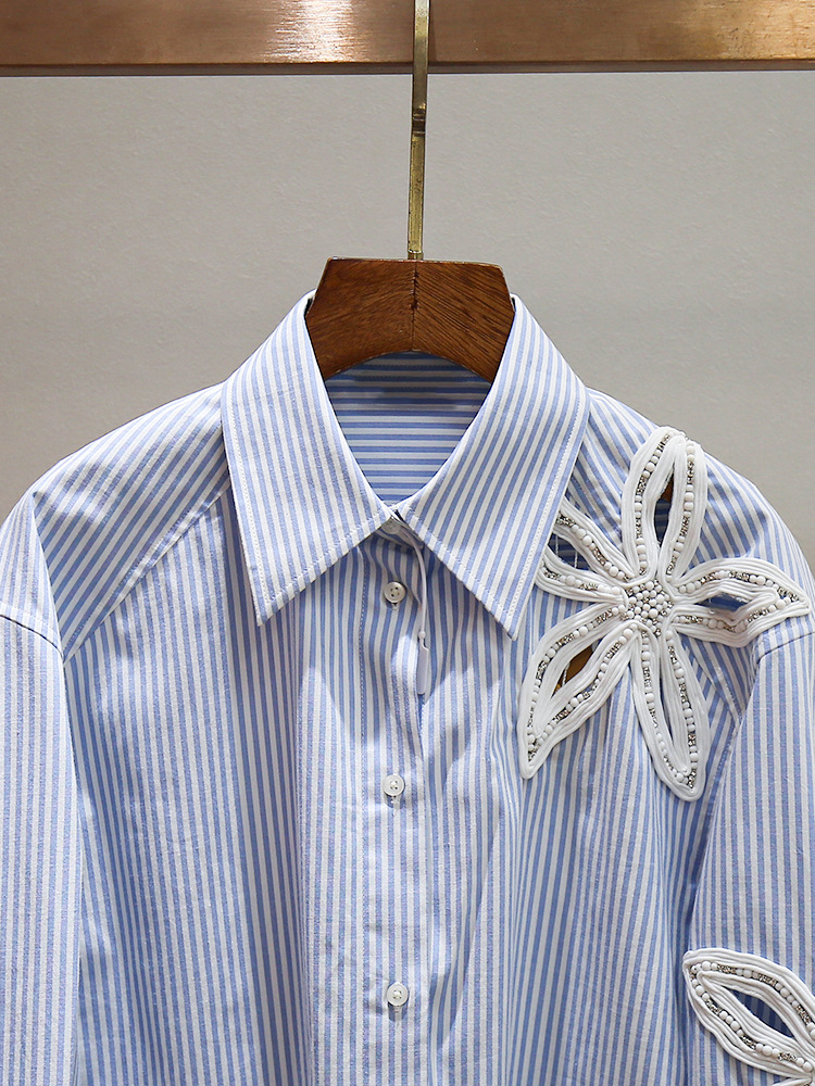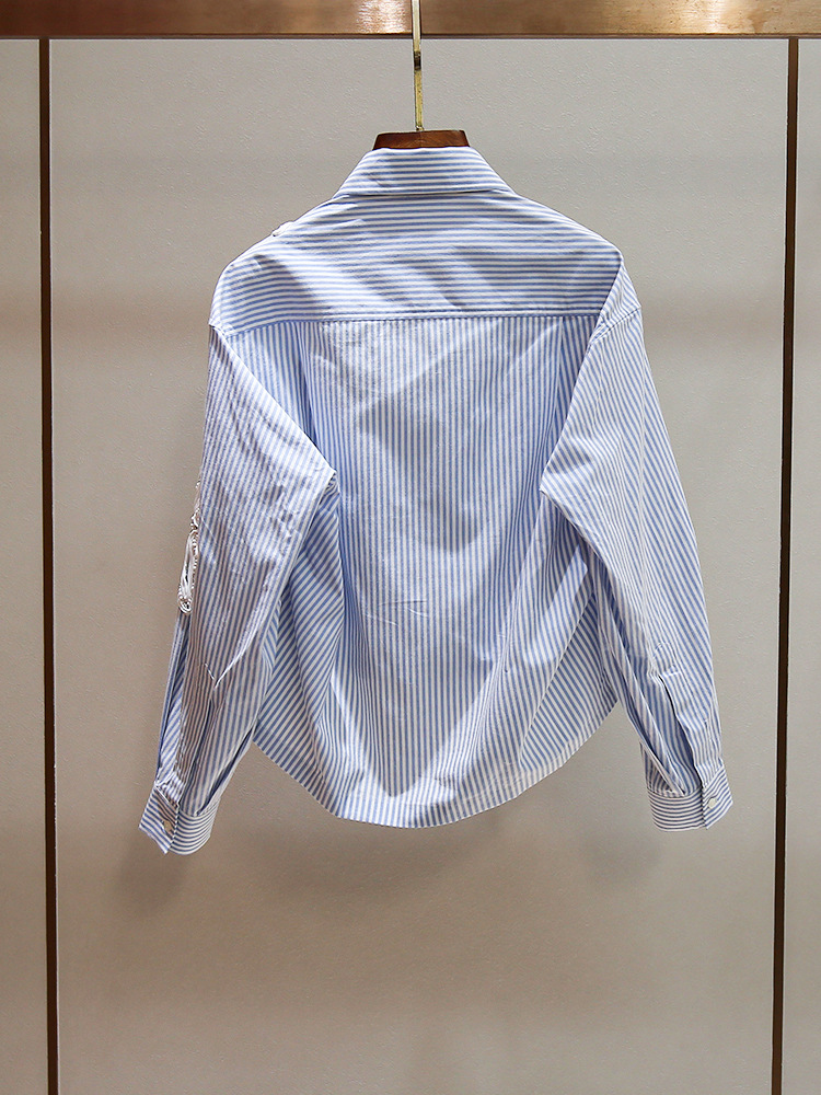 S niche 새로운 디자인 구슬 장식 중공 꽃 옷깃 불규칙한 줄무늬 카디건 셔츠 탑 여성용스토어 가기