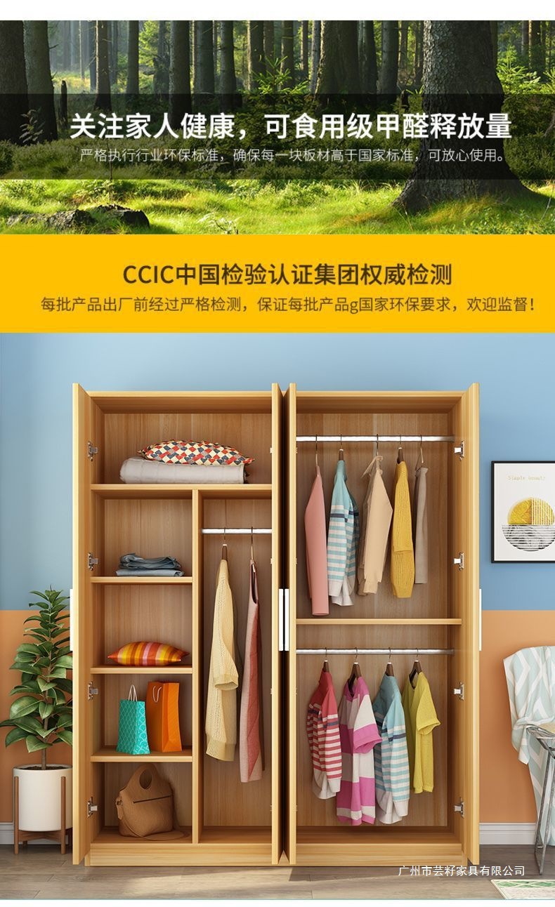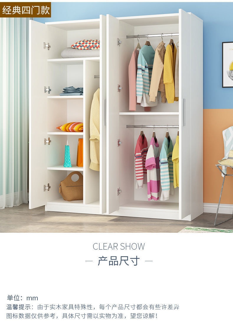 다층 침실 임대실을 위한 간단한 수납 원목 옷장 가정용 조립 캐비닛 간단하고 경제적인 대형 옷장스토어 가기