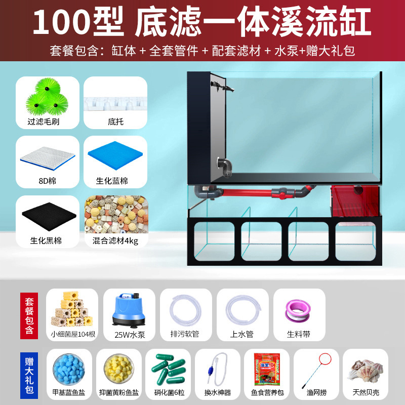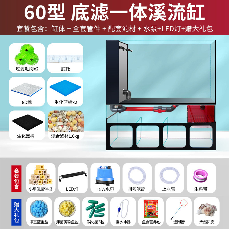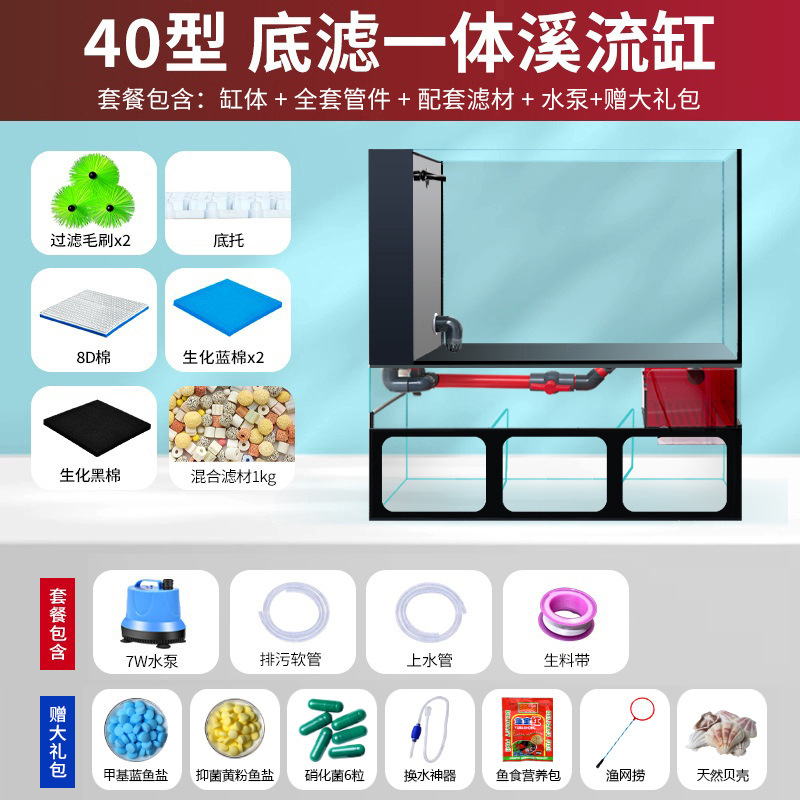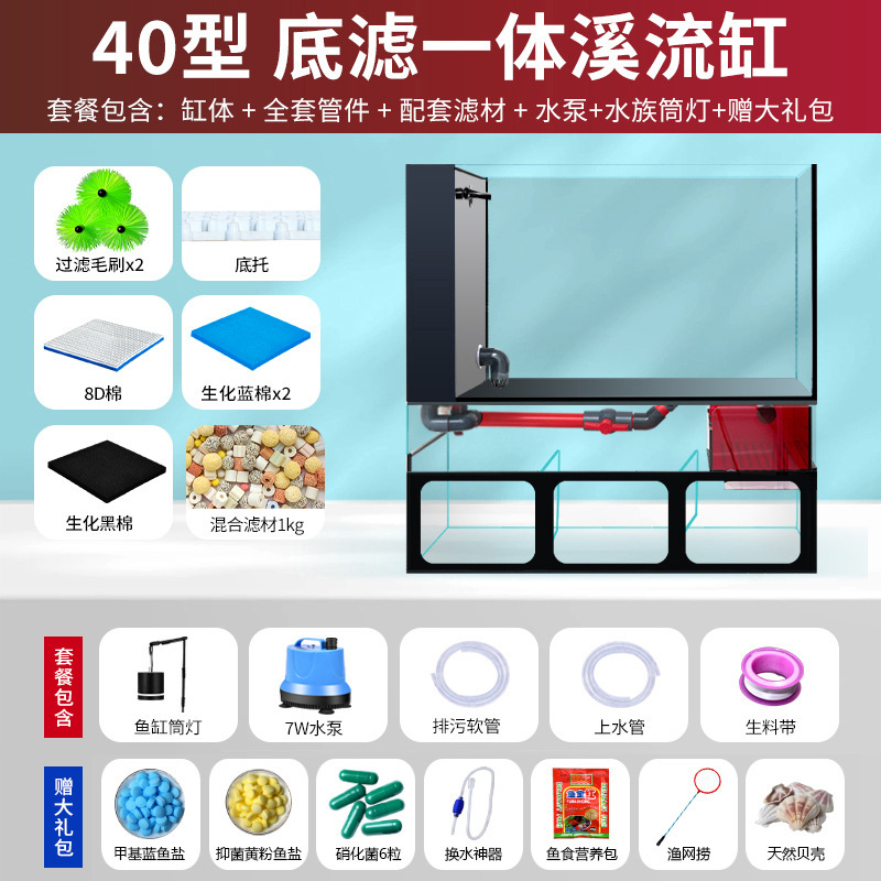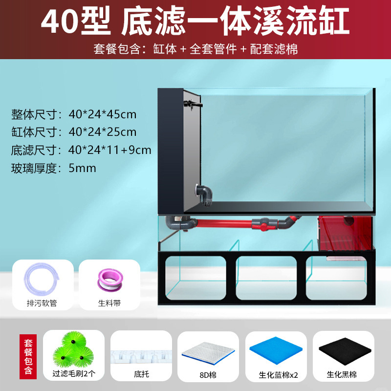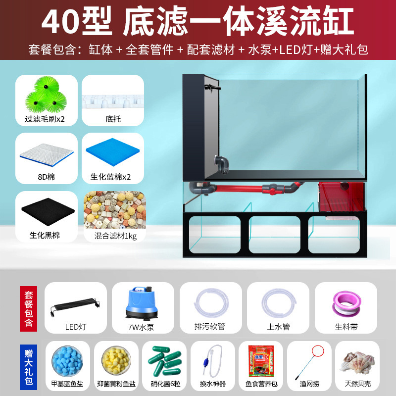 필터가있는 거실 용 소형 수조 금붕어 탱크 바닥 필터 통합 수족관 데스크탑 가정용 소형 수조 초백색 유리