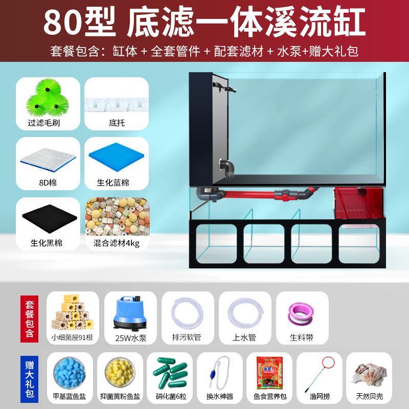 필터가있는 거실 용 소형 수조 금붕어 탱크 바닥 필터 통합 수족관 데스크탑 가정용 소형 수조 초백색 유리스토어 가기