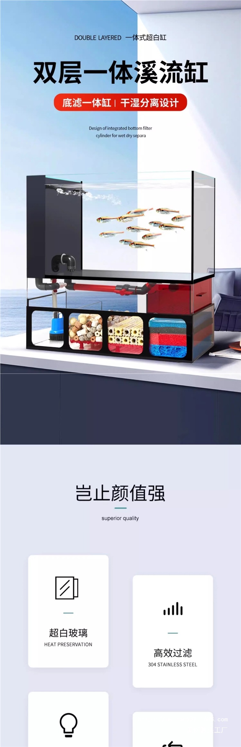 • 하단 필터 통합 스트림 탱크 50 베어 탱크
