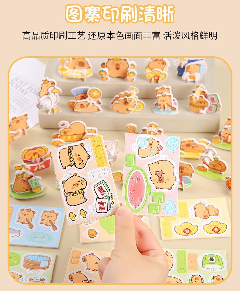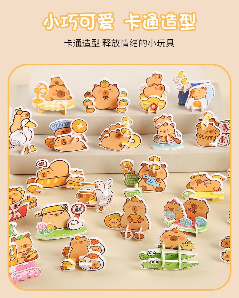 어린이 종이 입체 작은 퍼즐 귀여운 만화 카피바라 모양 입체 작은 퍼즐 장난감 액세서리 선물