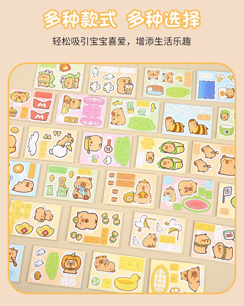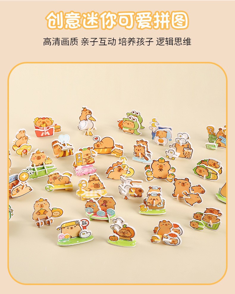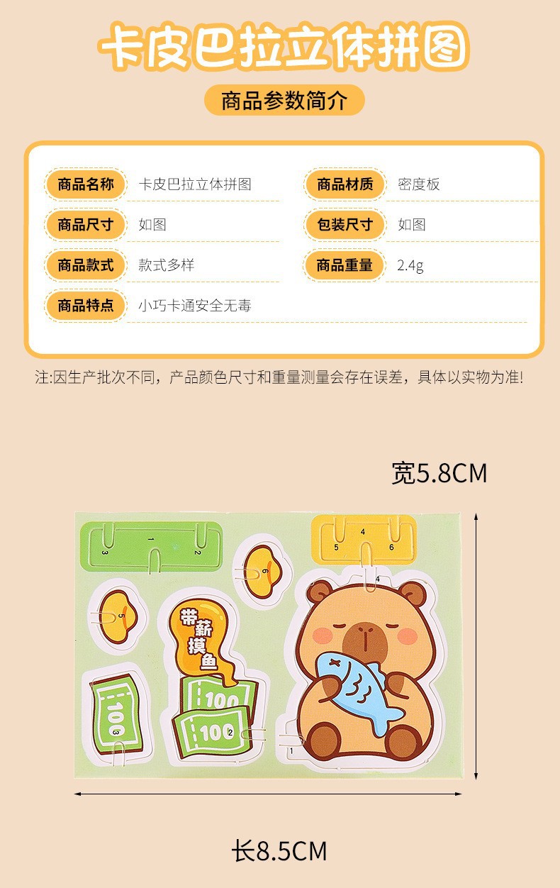 어린이 종이 입체 작은 퍼즐 귀여운 만화 카피바라 모양 입체 작은 퍼즐 장난감 액세서리 선물스토어 가기
