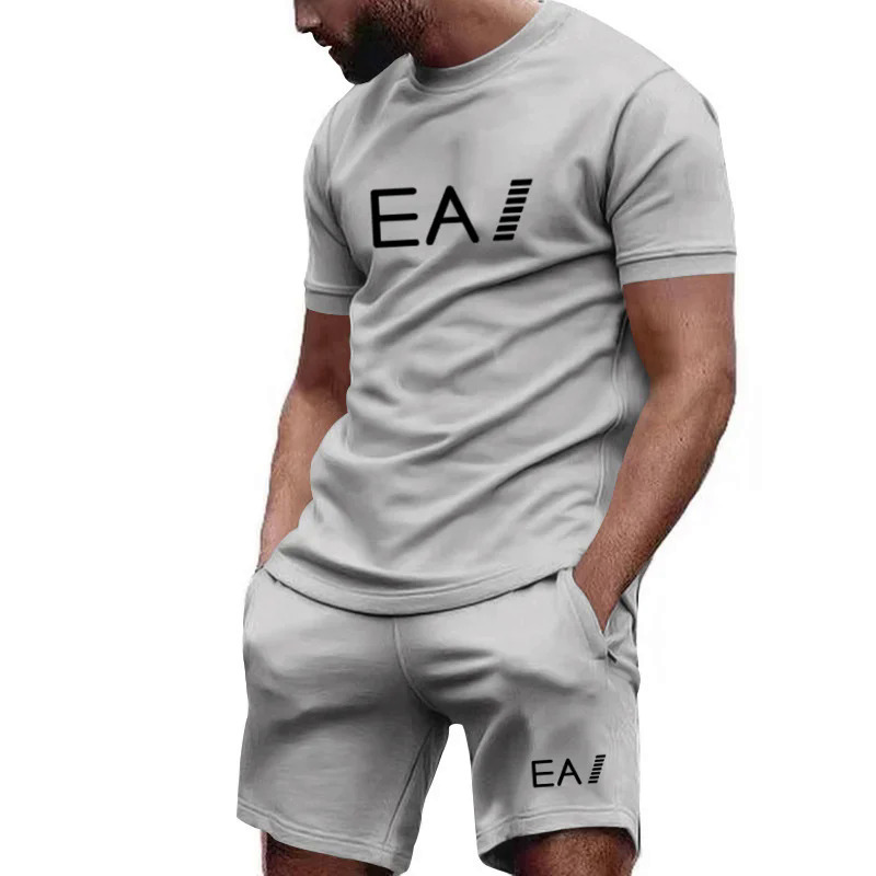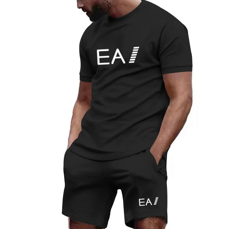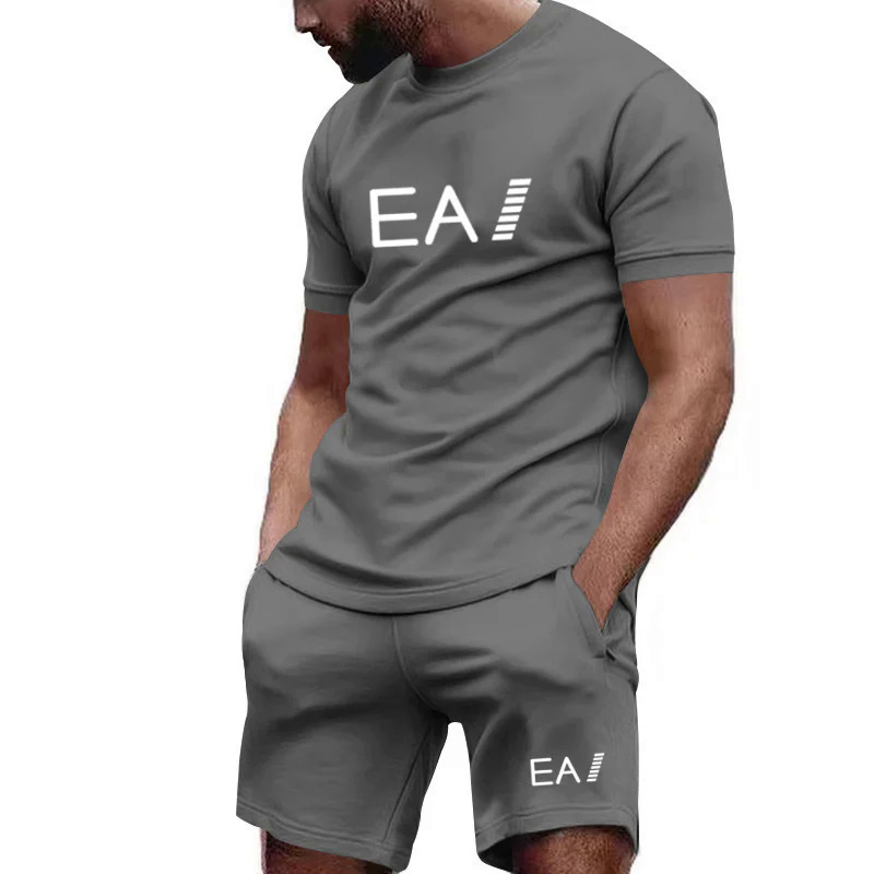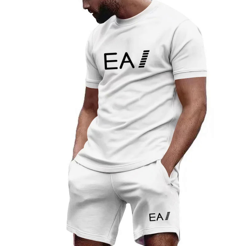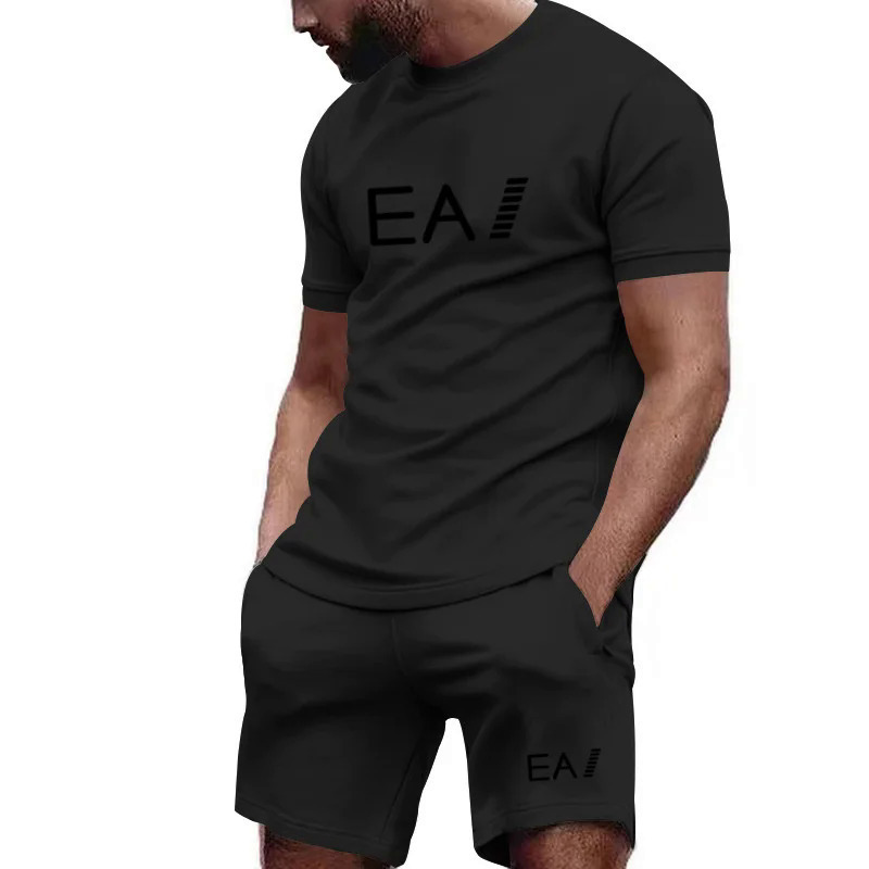 시즌 남성용 반팔 코튼 티셔츠 세트 패션 개성 프린트 티셔츠 코튼 세트 반바지 2피스 세트 캐주얼하고 편안합니다.