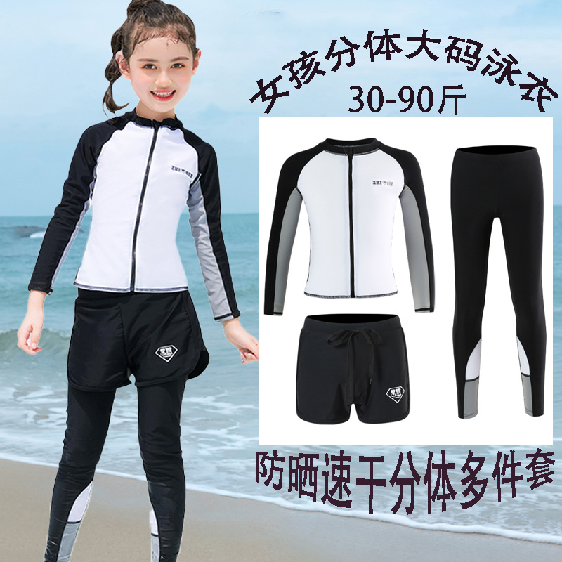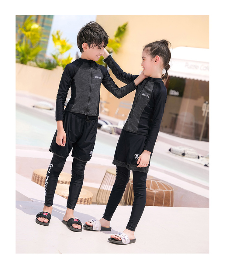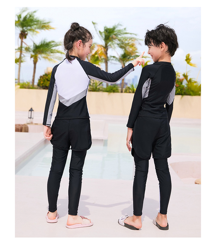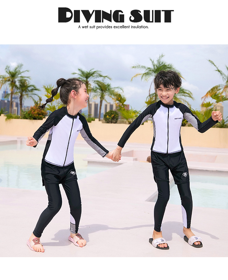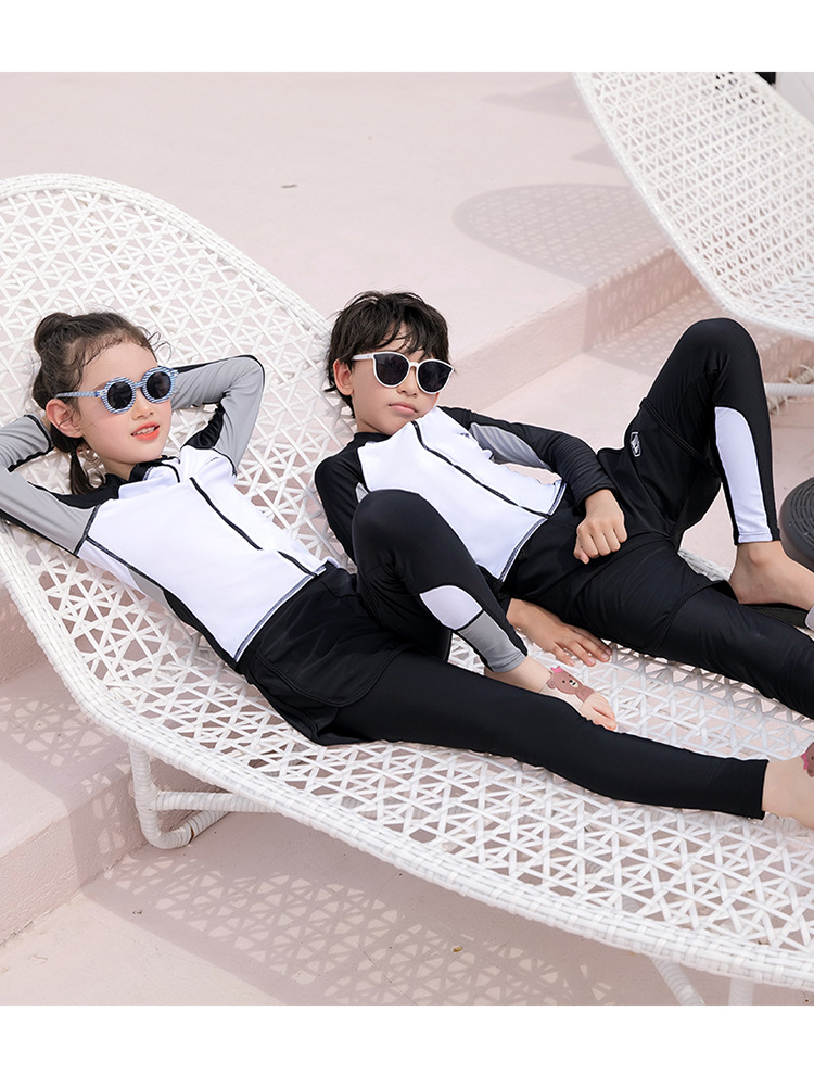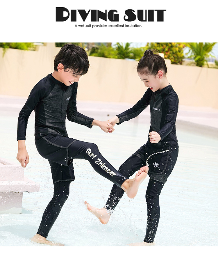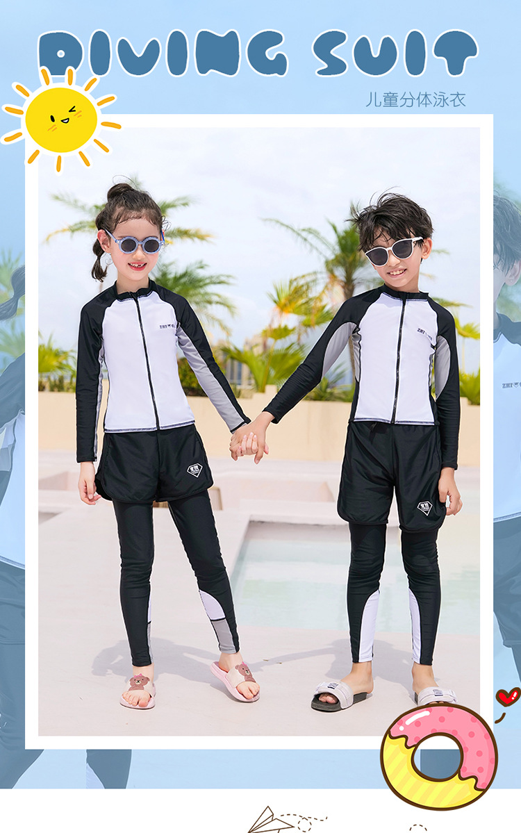 수영복, 아동용 다이빙 및 서핑 슈트, 중대형 아동용 스플릿 긴팔 자외선 차단 수영복, 남아 및 여아용 온천 스포츠 수영복