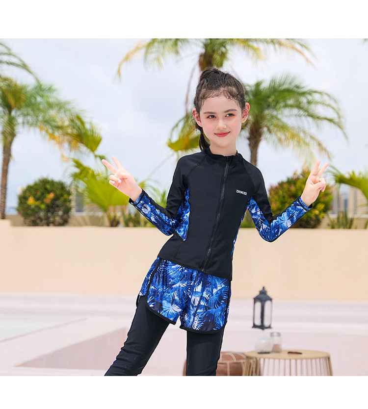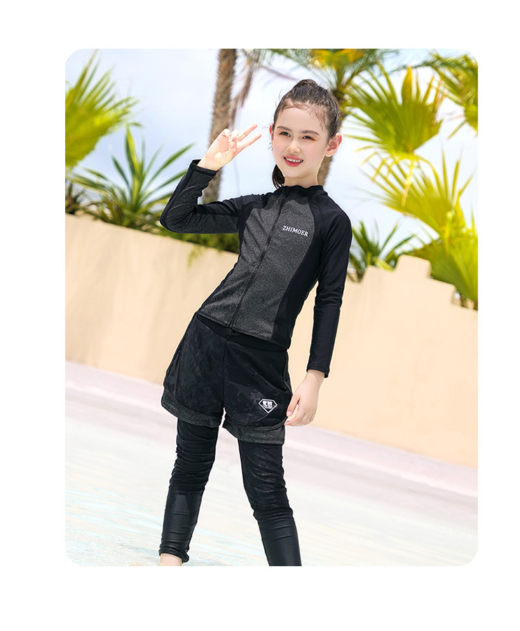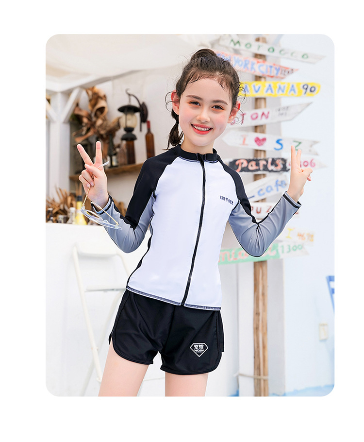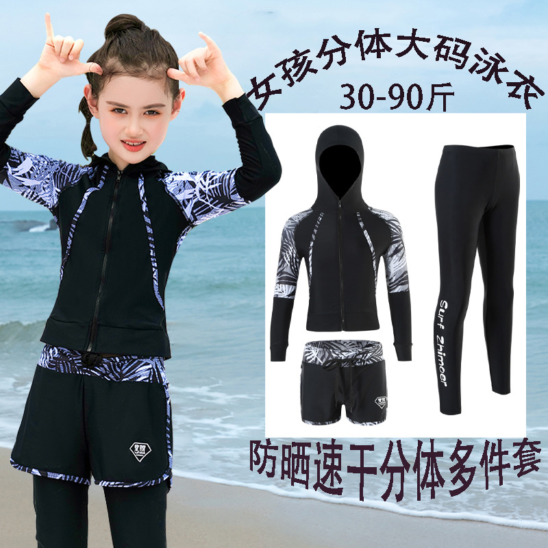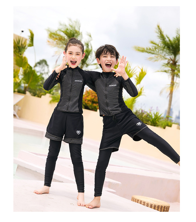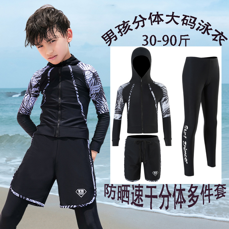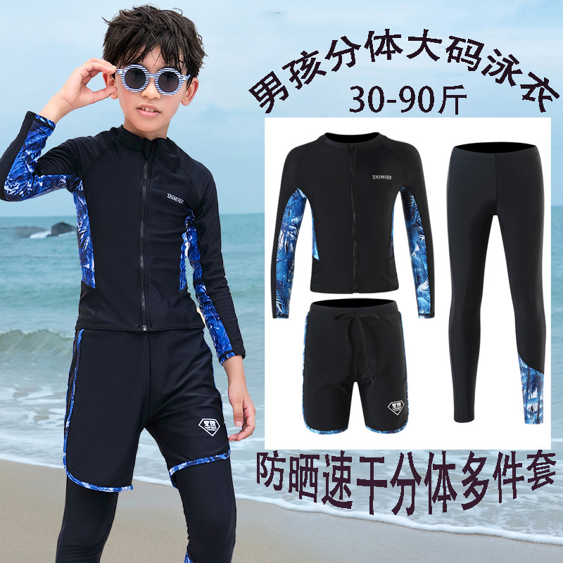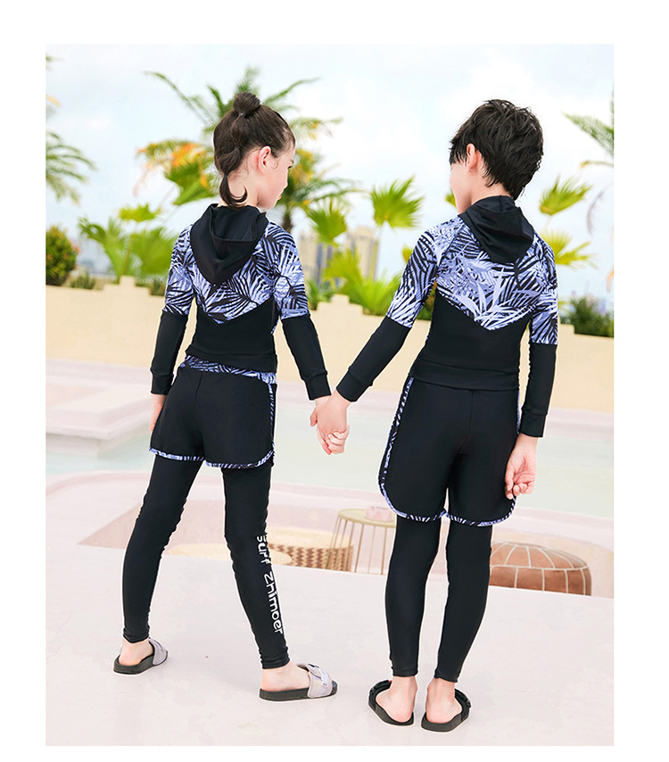 수영복, 아동용 다이빙 및 서핑 슈트, 중대형 아동용 스플릿 긴팔 자외선 차단 수영복, 남아 및 여아용 온천 스포츠 수영복