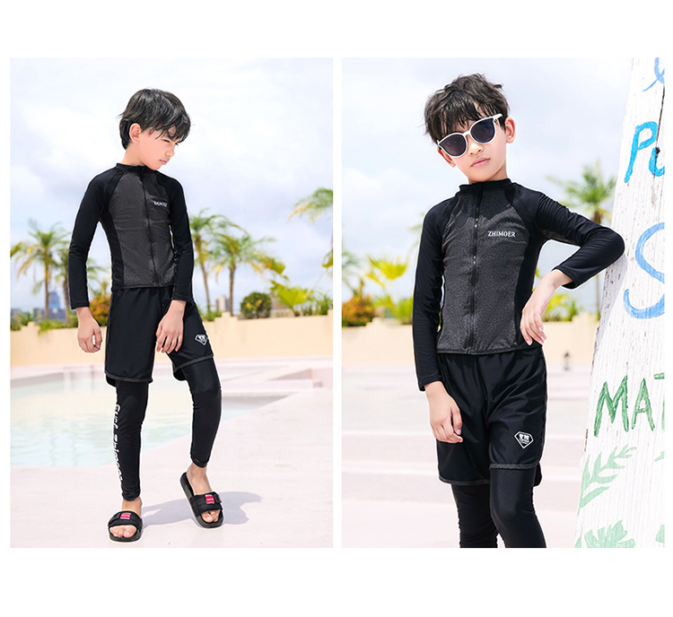 수영복, 아동용 다이빙 및 서핑 슈트, 중대형 아동용 스플릿 긴팔 자외선 차단 수영복, 남아 및 여아용 온천 스포츠 수영복스토어 가기