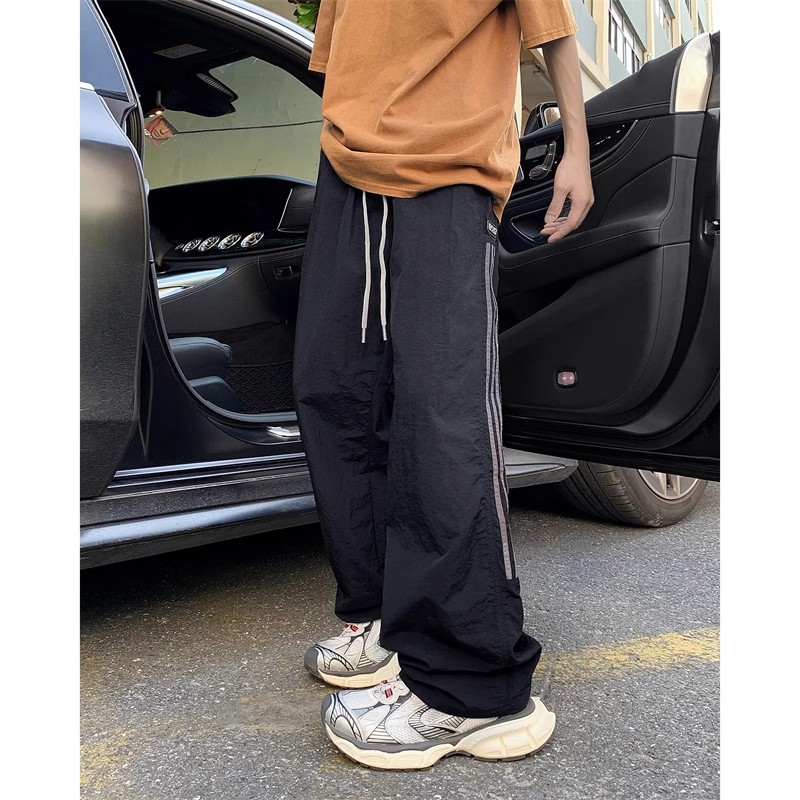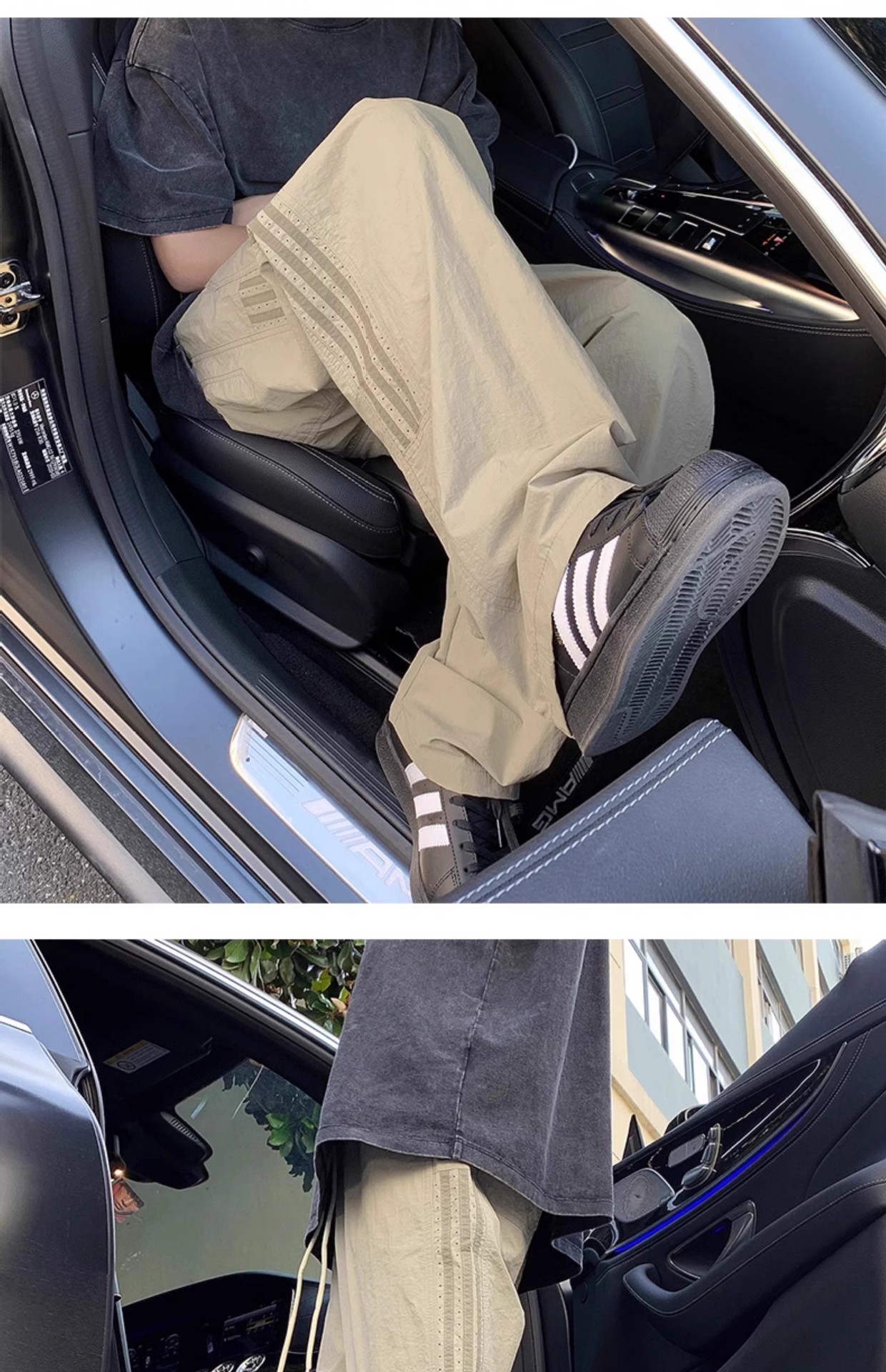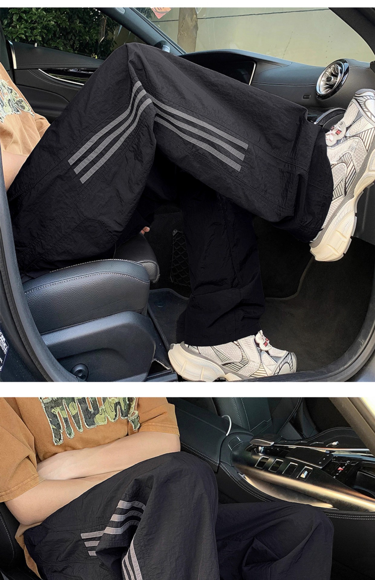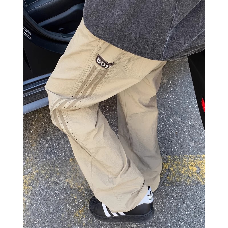 남성용 여름 주름 펀치 캐주얼 바지, 아메리칸 레트로 아웃도어 스포츠 스트라이프 루즈하고 다재다능한 스트레이트 바지