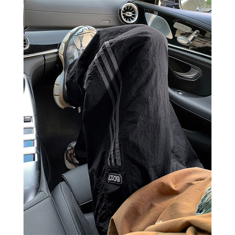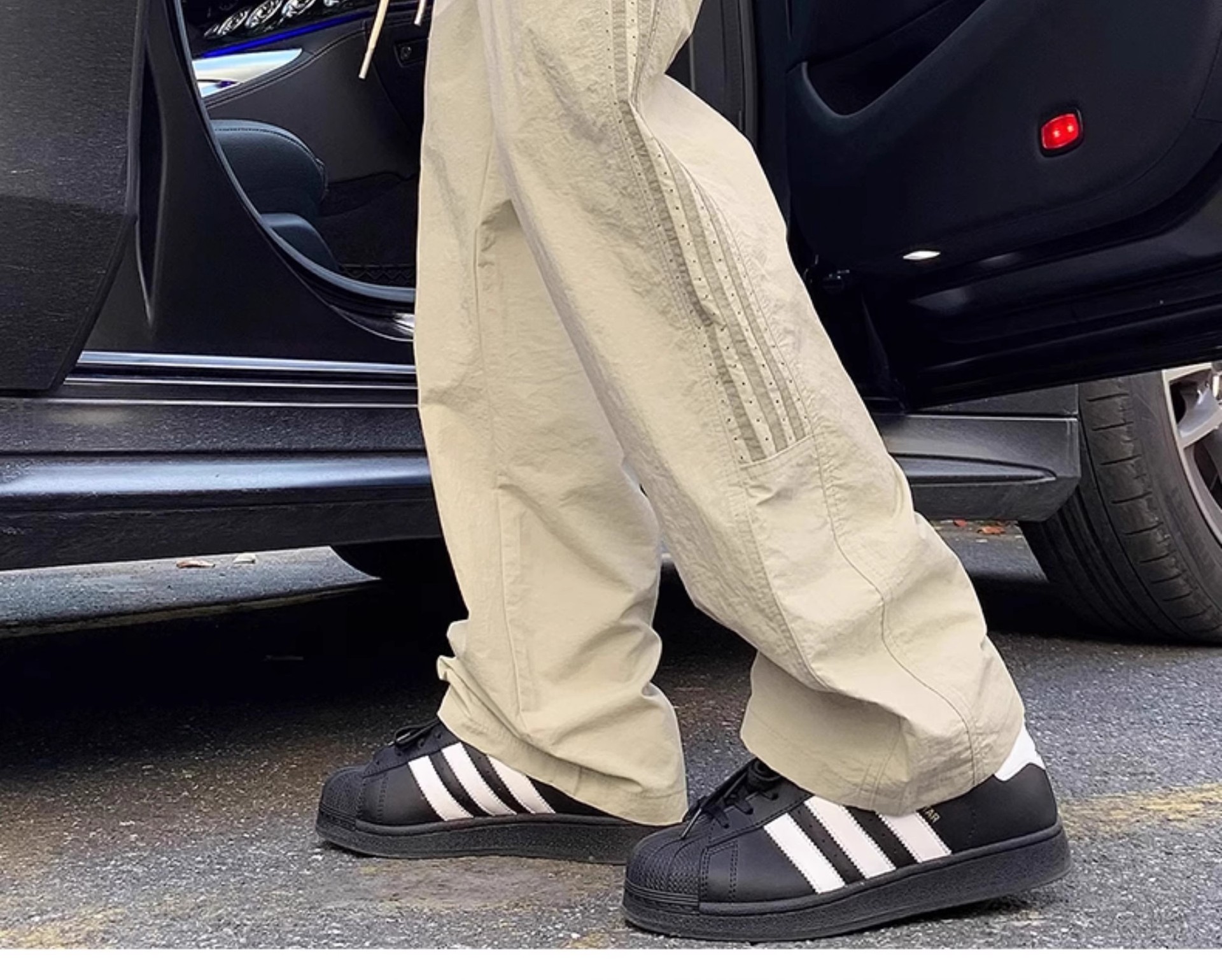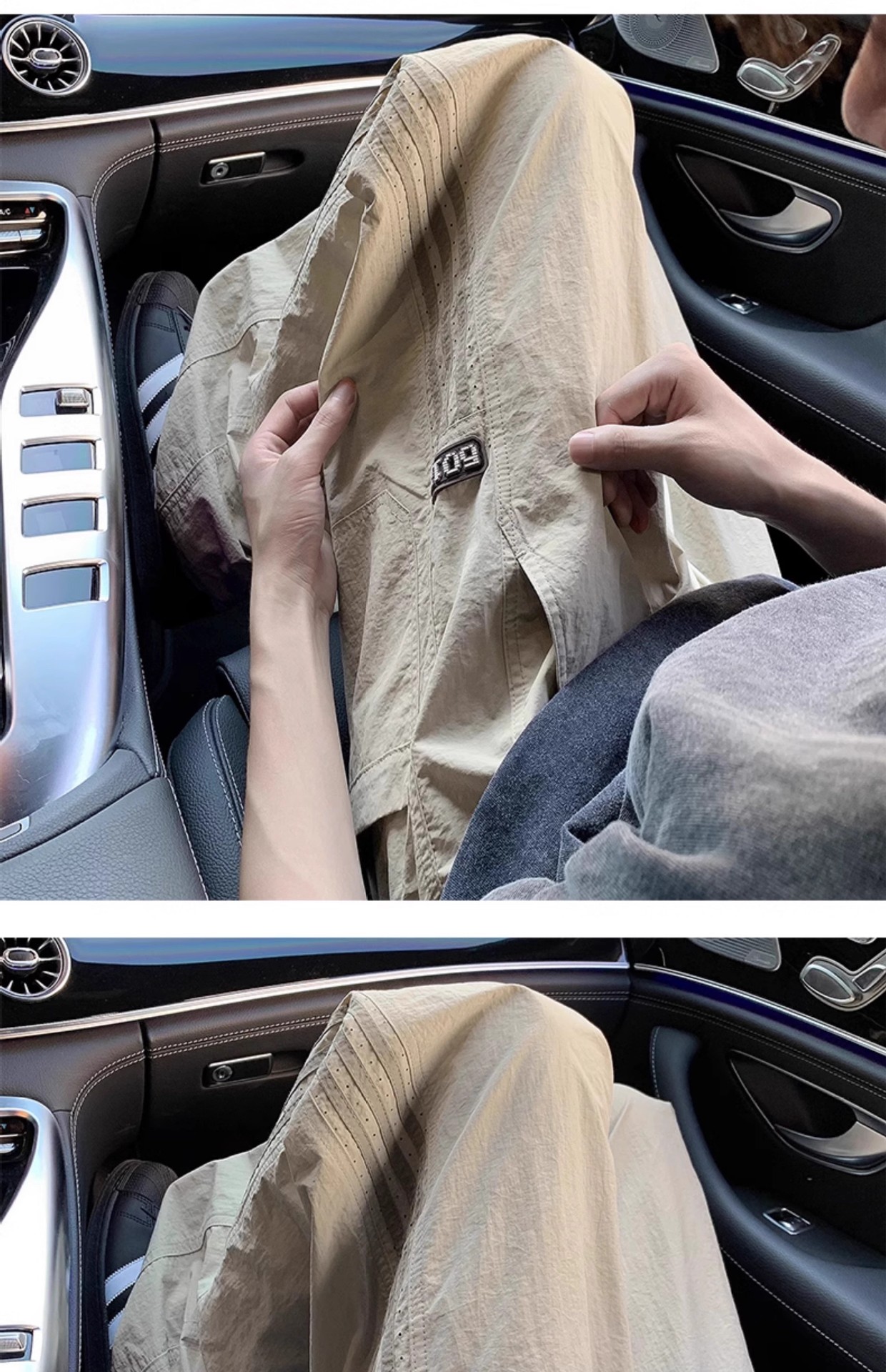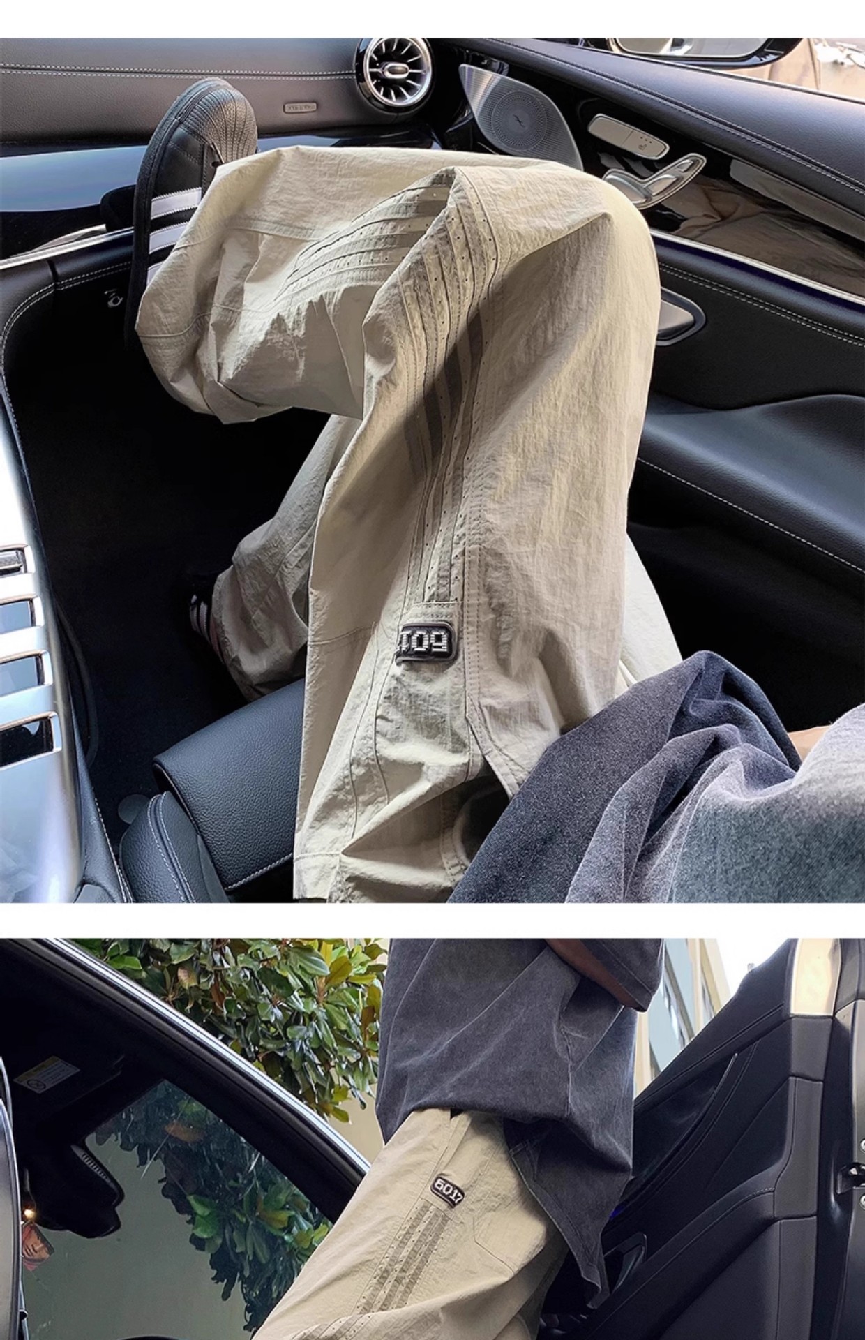 남성용 여름 주름 펀치 캐주얼 바지, 아메리칸 레트로 아웃도어 스포츠 스트라이프 루즈하고 다재다능한 스트레이트 바지