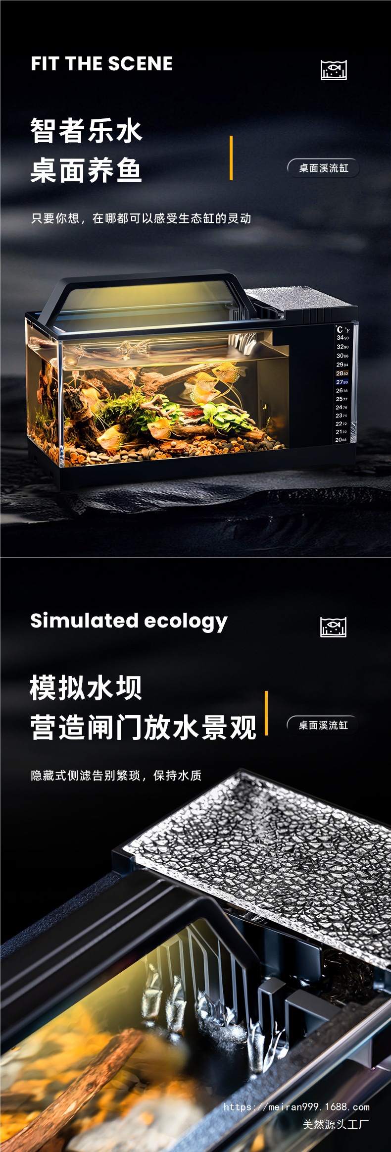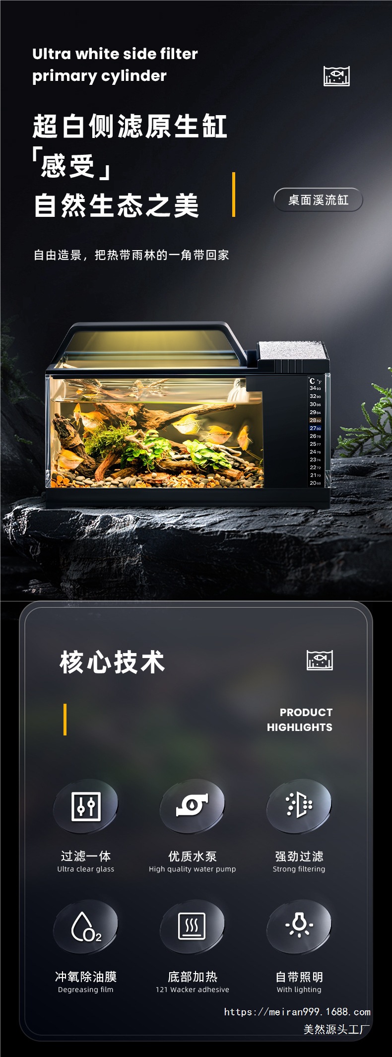 남미 수조 측면 필터, 조명, 가열 및 필터링 기능이 모두 포함된 소형 가정용 데스크탑, 물 교환 없음, 게으른 인공 조경스토어 가기