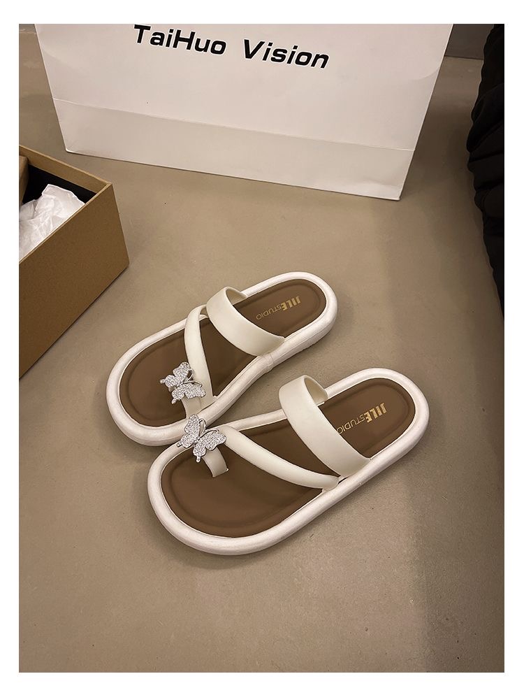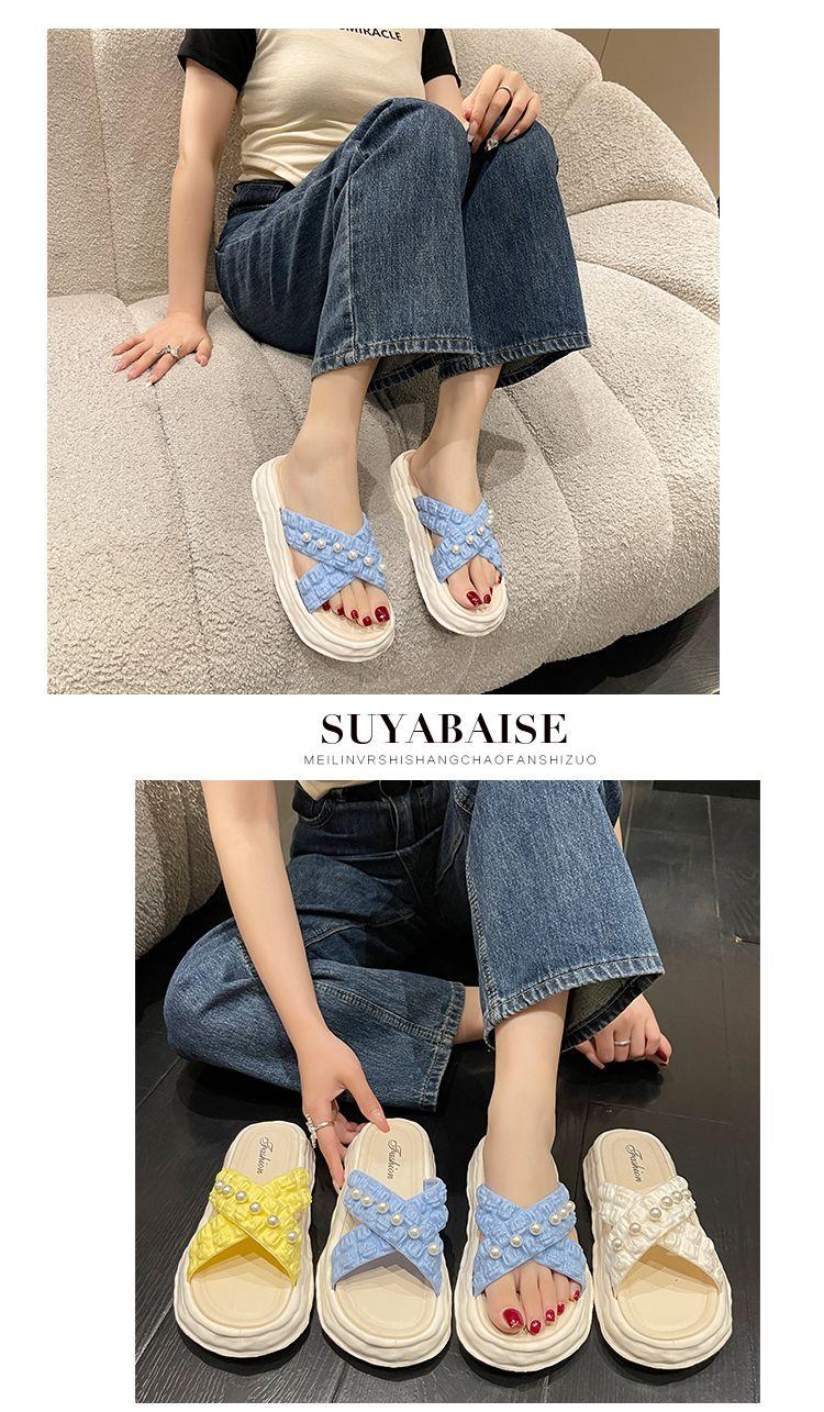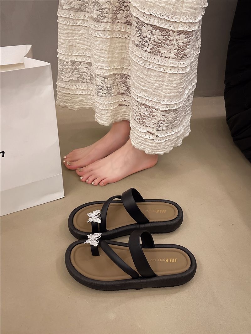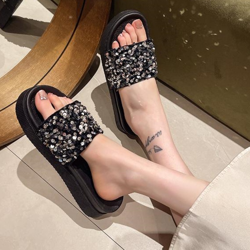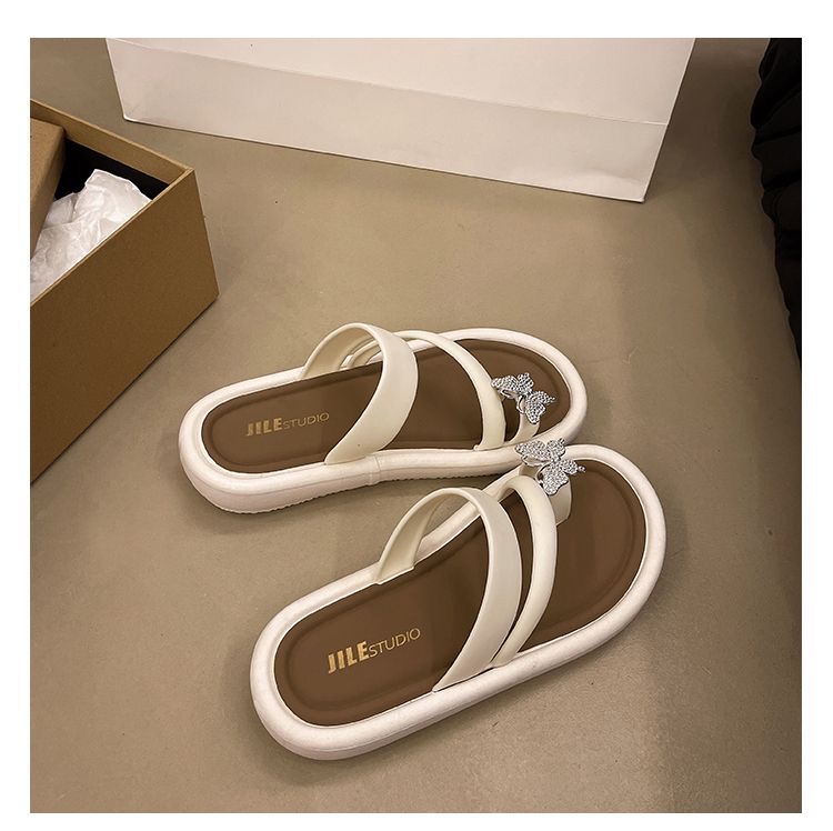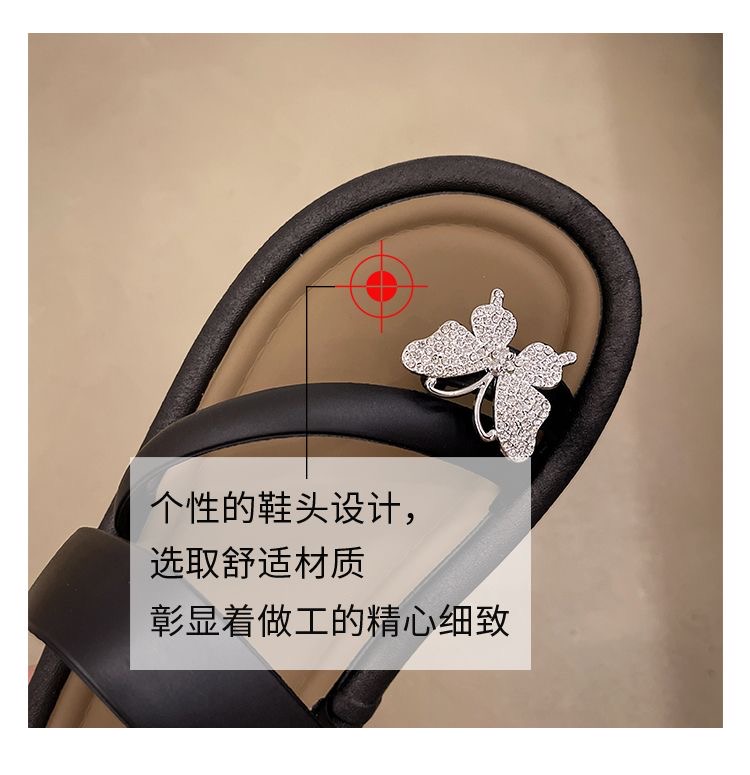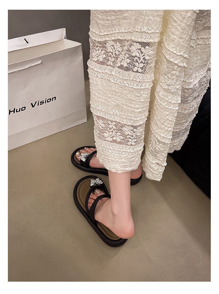 새로운 미끄럼 방지 부드러운 밑창 슬리퍼, 패셔너블한 한국식 두꺼운 밑창 리본 라인스톤 인터넷 연예인 소녀 하트 슈즈스토어 가기