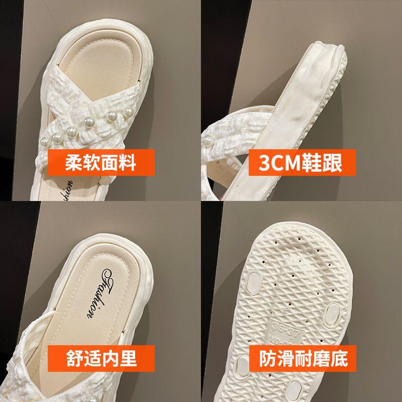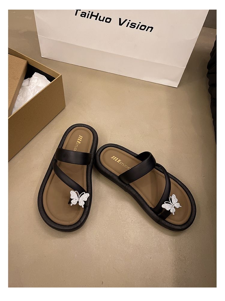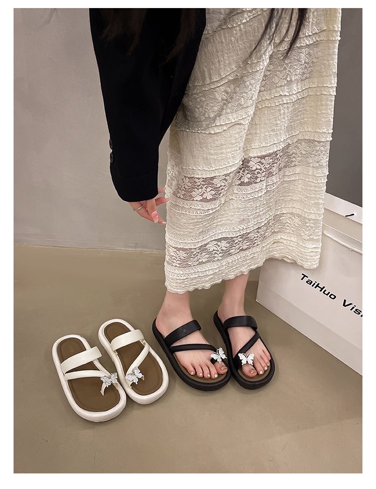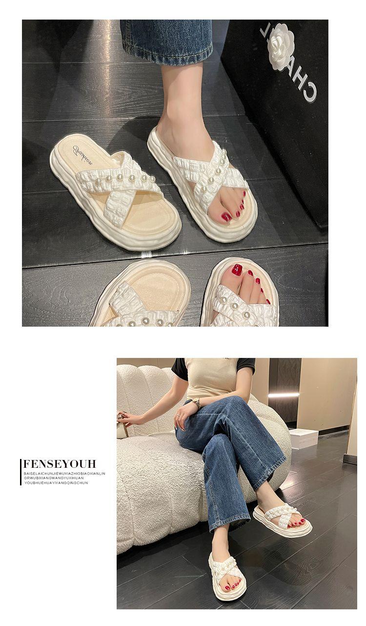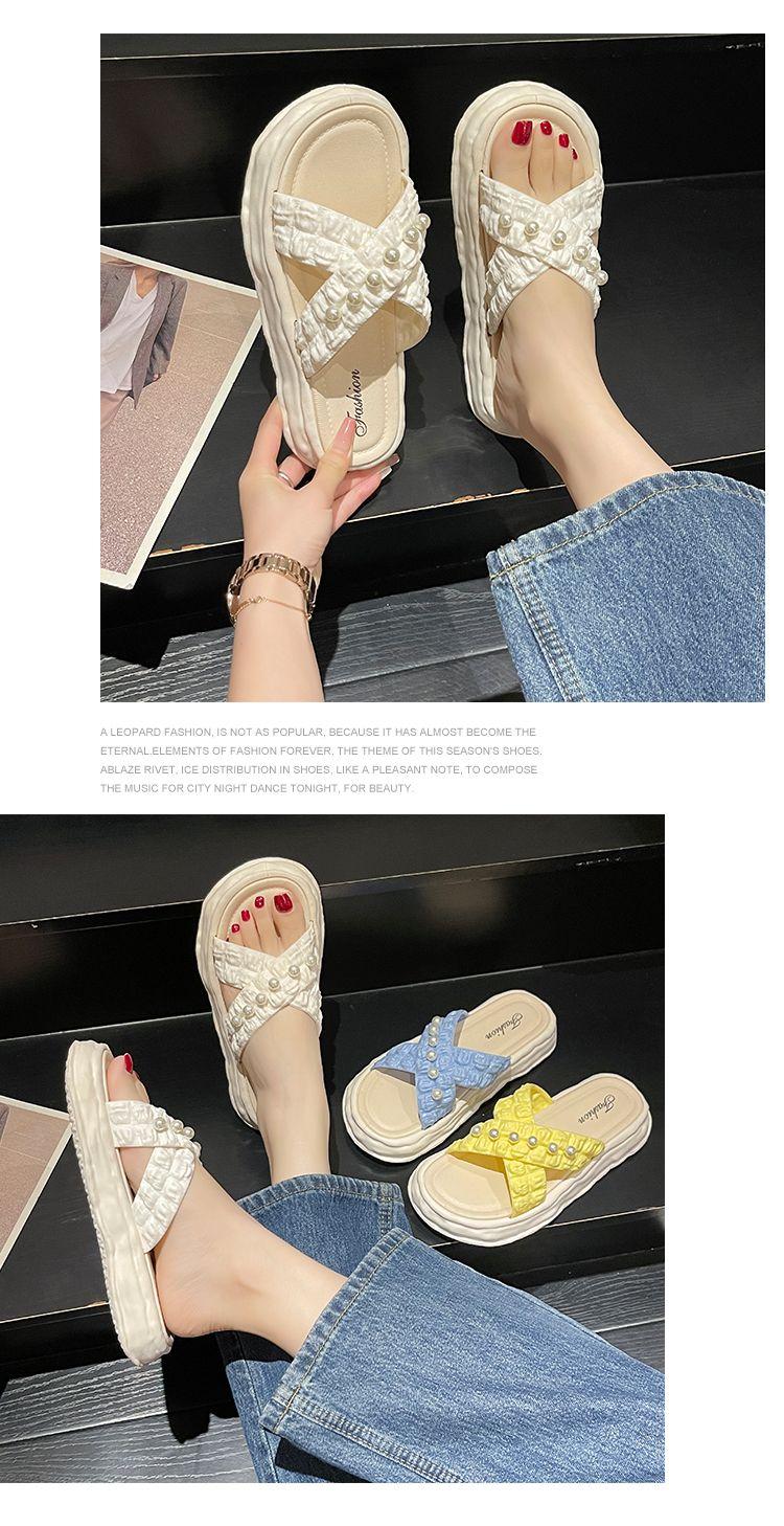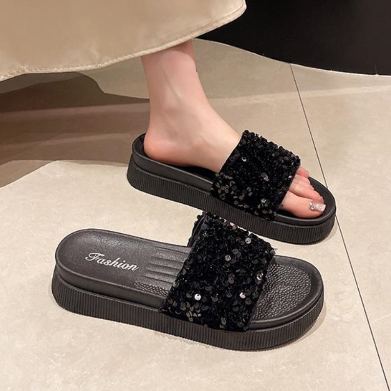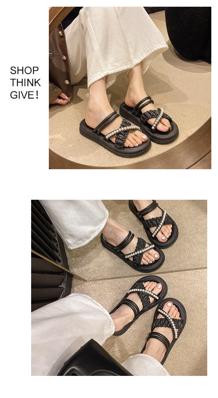새로운 미끄럼 방지 부드러운 밑창 슬리퍼, 패셔너블한 한국식 두꺼운 밑창 리본 라인스톤 인터넷 연예인 소녀 하트 슈즈스토어 가기