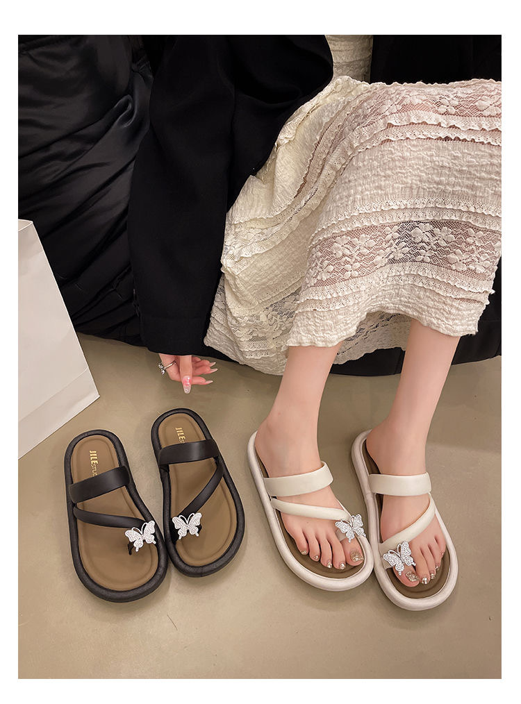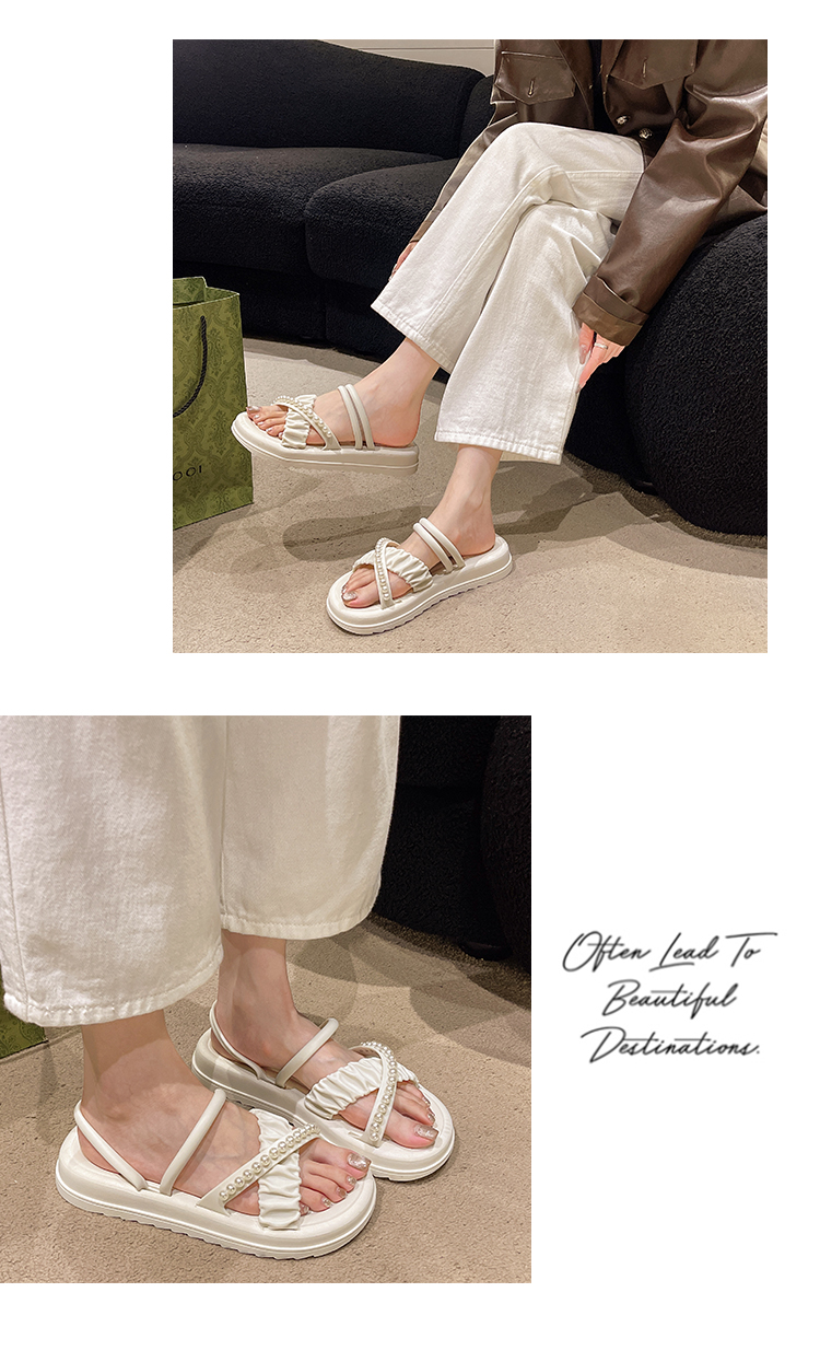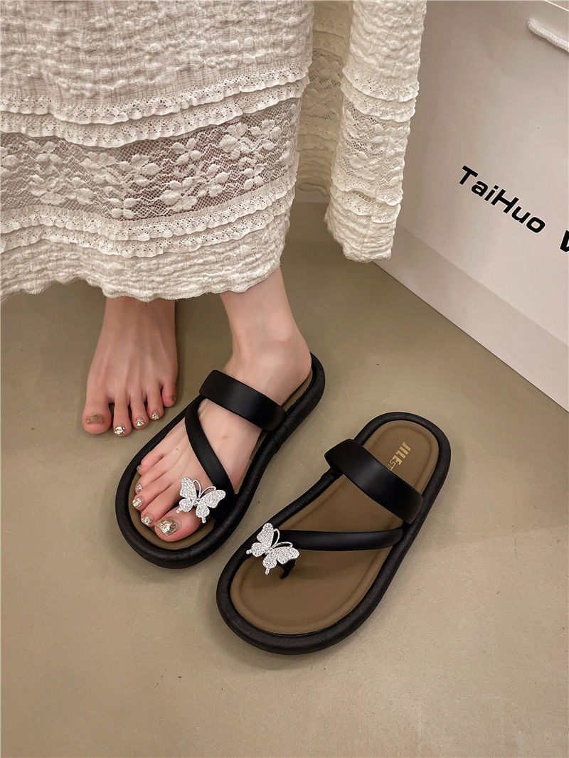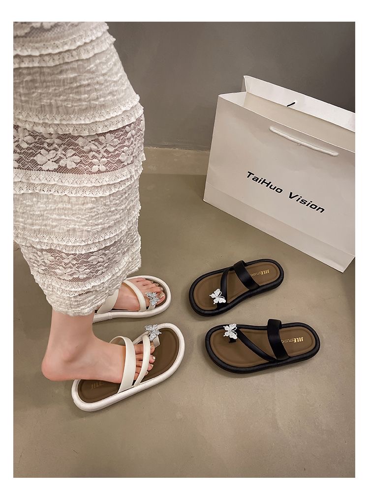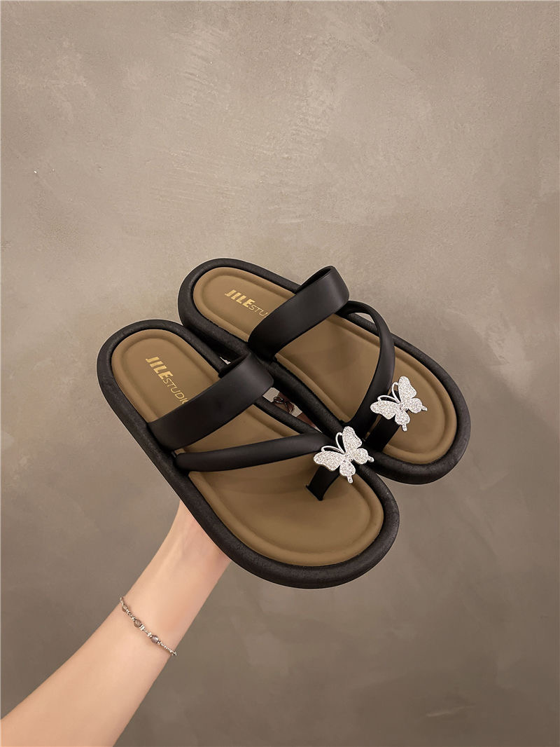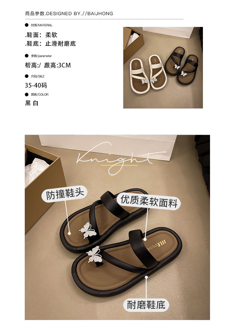 새로운 미끄럼 방지 부드러운 밑창 슬리퍼, 패셔너블한 한국식 두꺼운 밑창 리본 라인스톤 인터넷 연예인 소녀 하트 슈즈스토어 가기