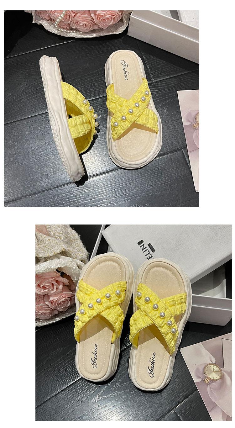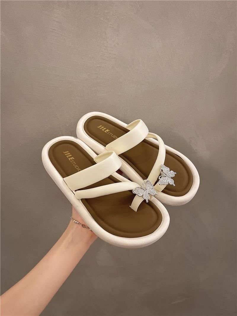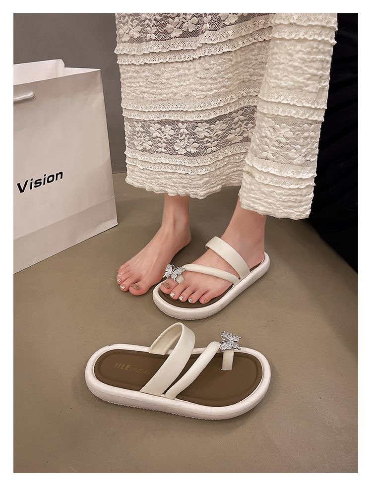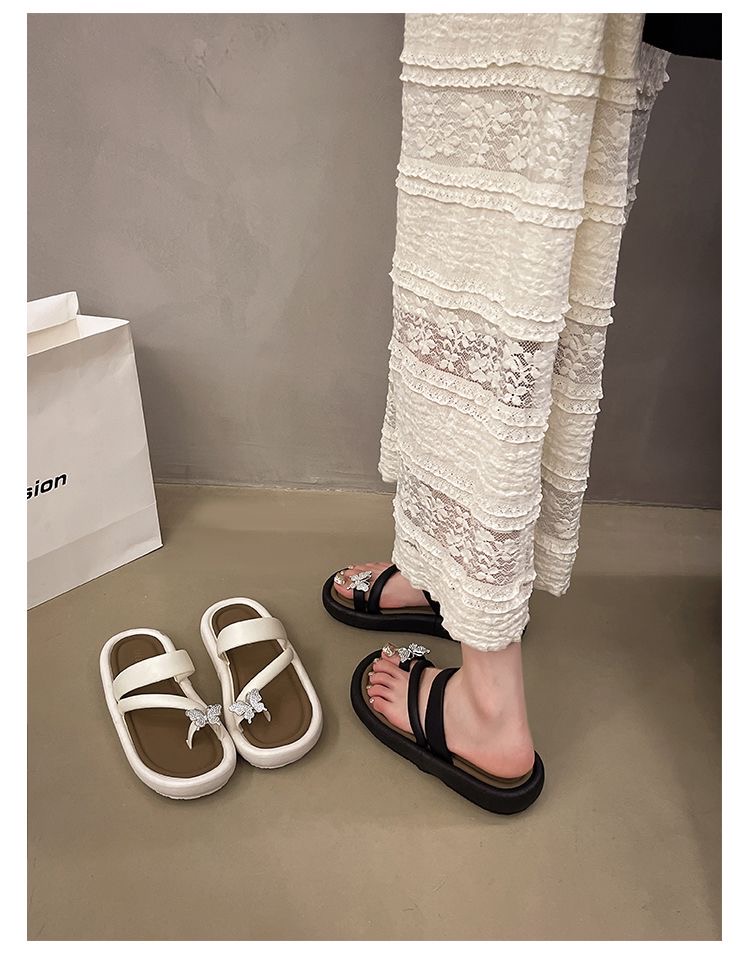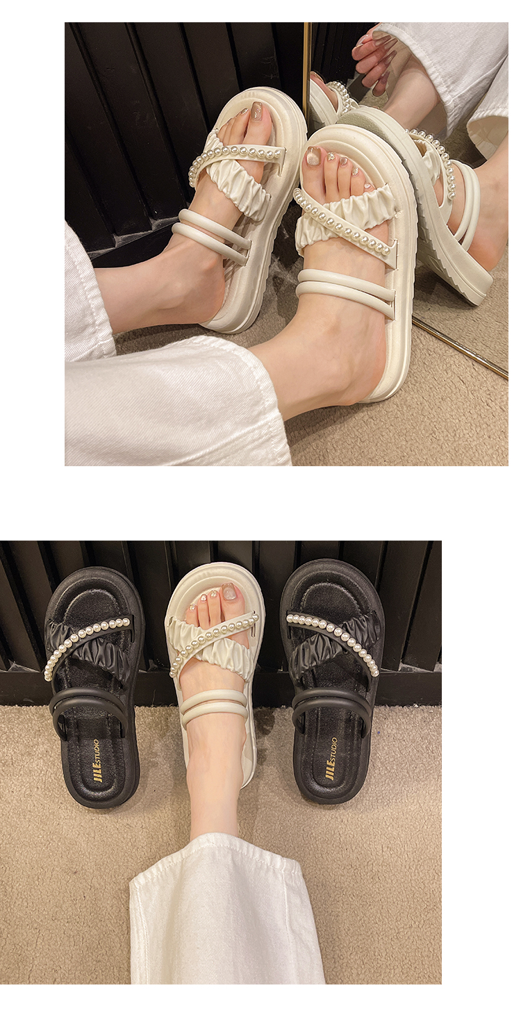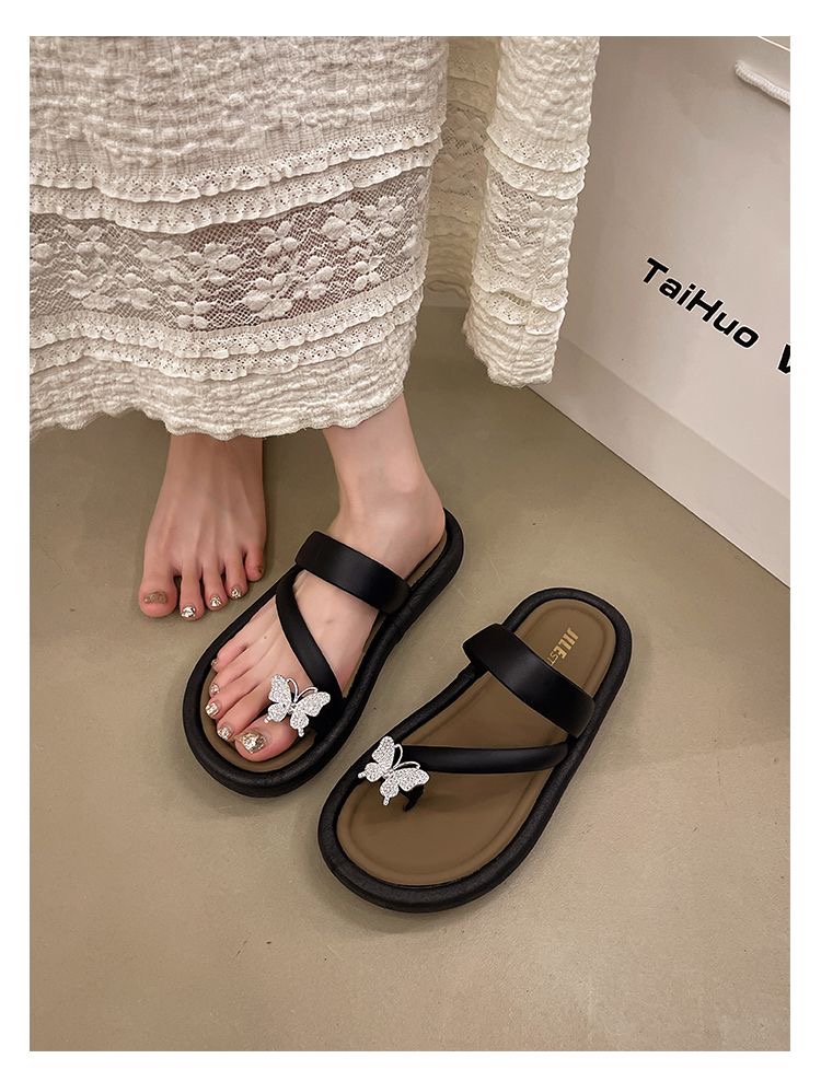 새로운 미끄럼 방지 부드러운 밑창 슬리퍼, 패셔너블한 한국식 두꺼운 밑창 리본 라인스톤 인터넷 연예인 소녀 하트 슈즈스토어 가기