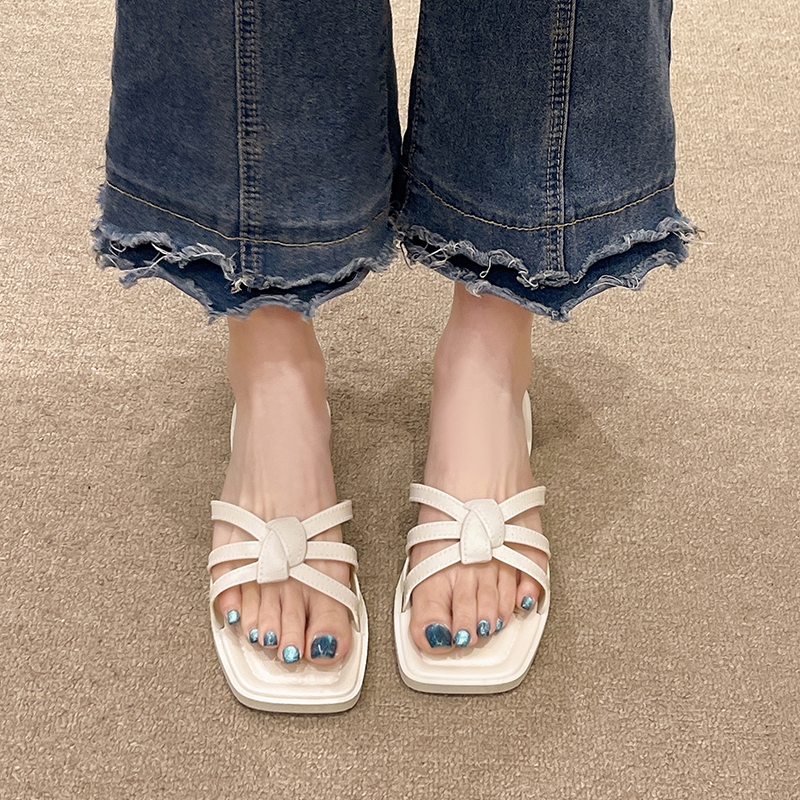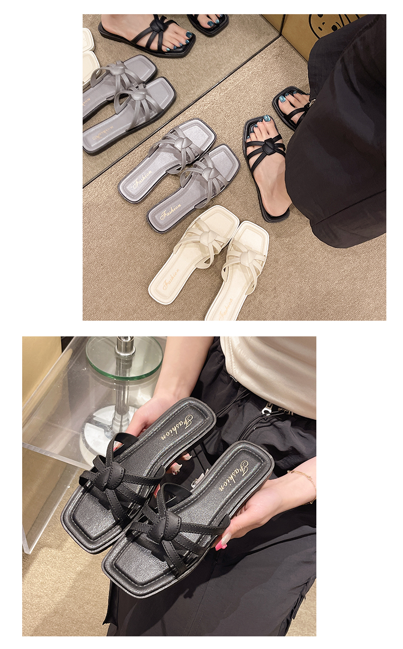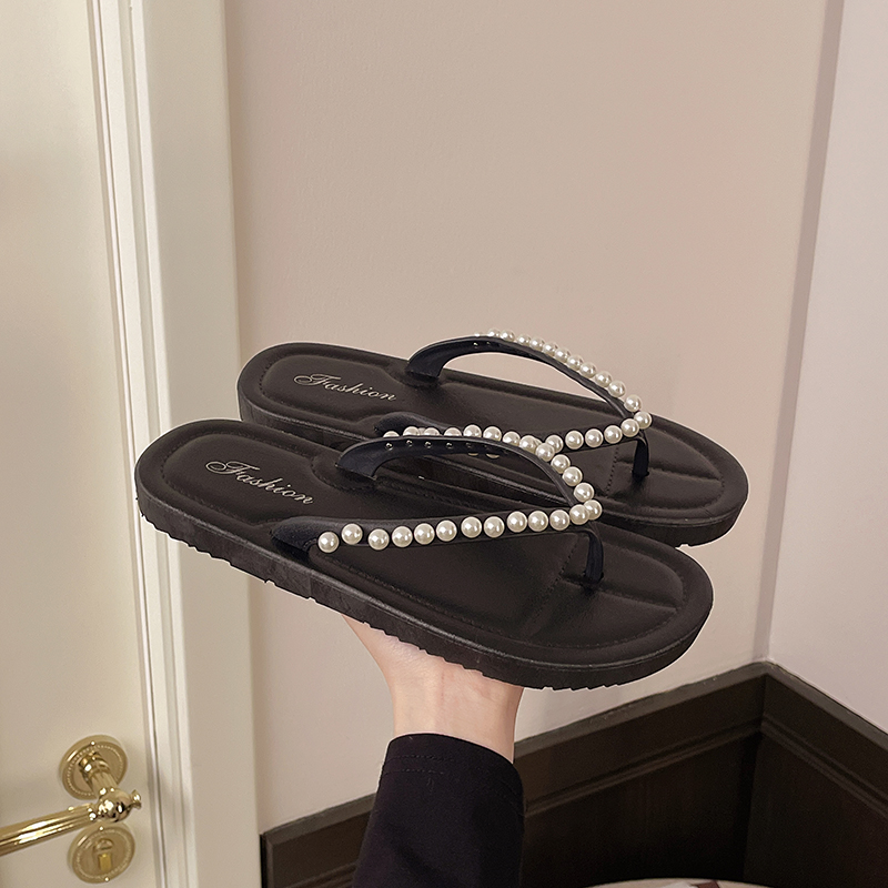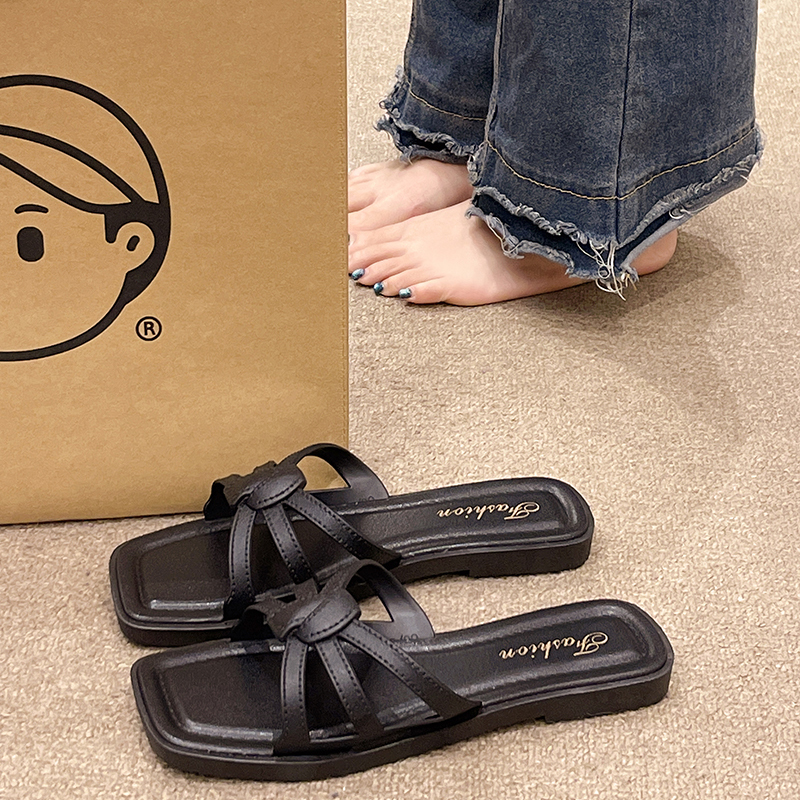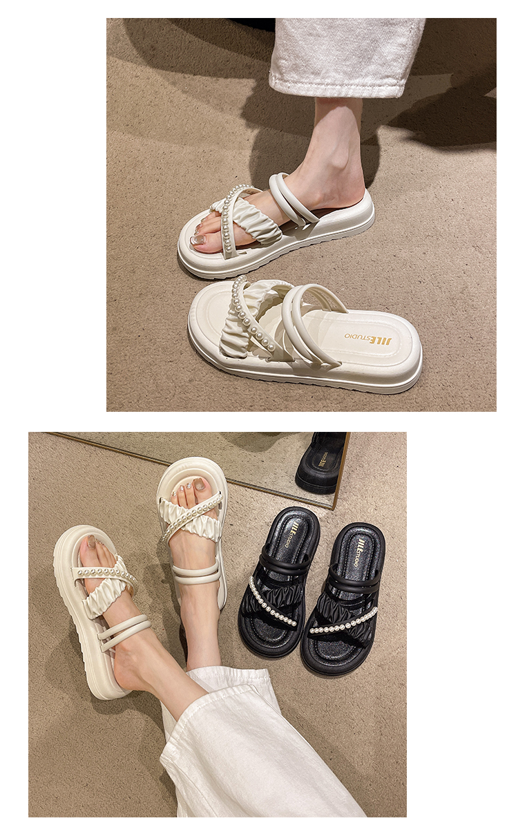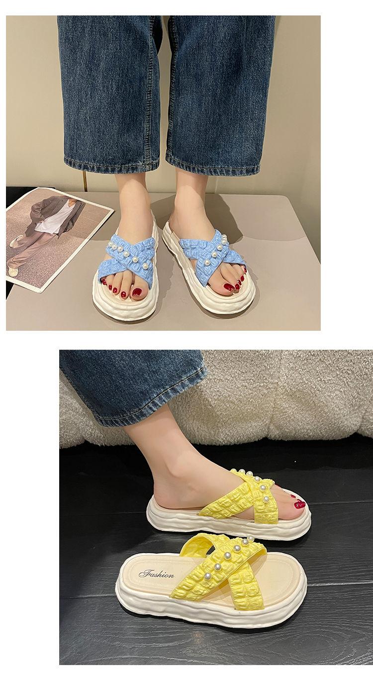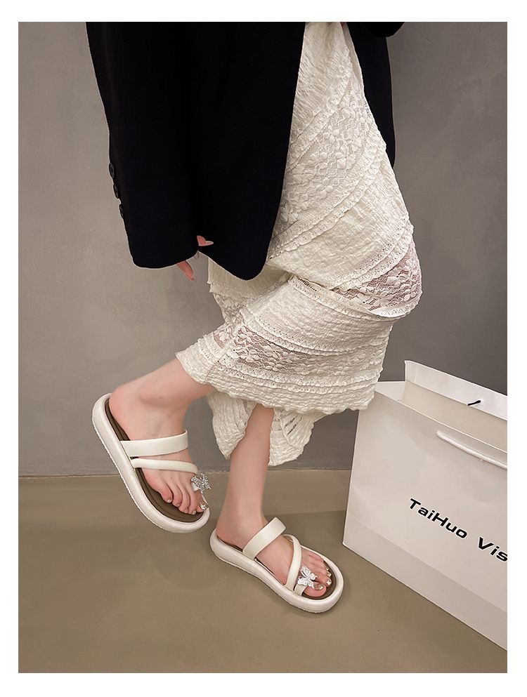 새로운 미끄럼 방지 부드러운 밑창 슬리퍼, 패셔너블한 한국식 두꺼운 밑창 리본 라인스톤 인터넷 연예인 소녀 하트 슈즈스토어 가기