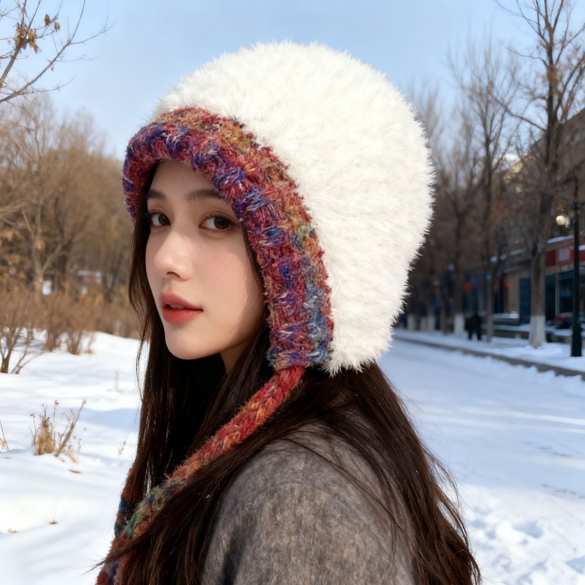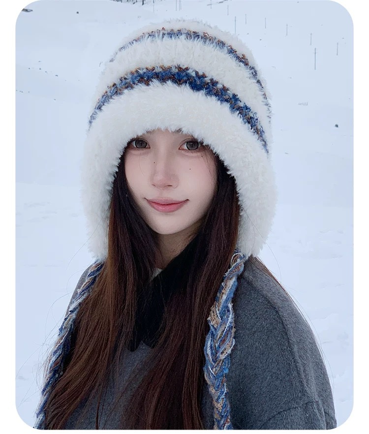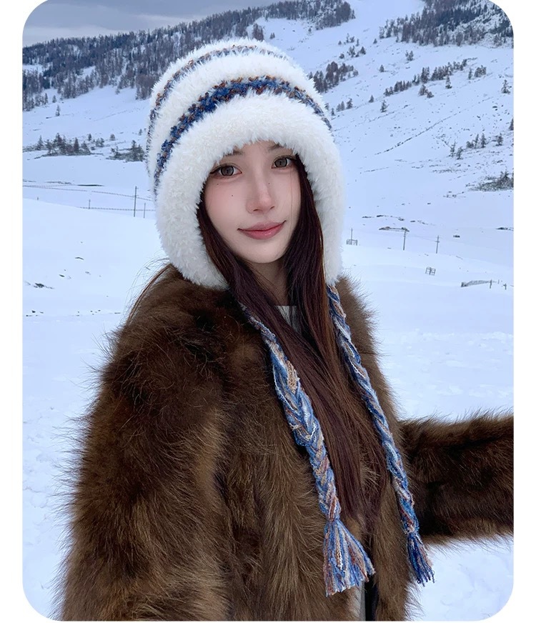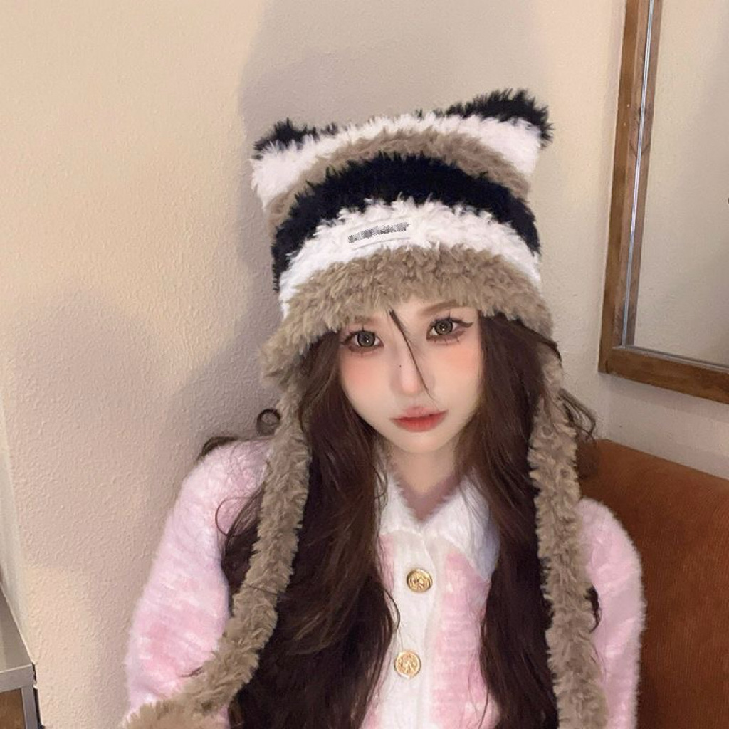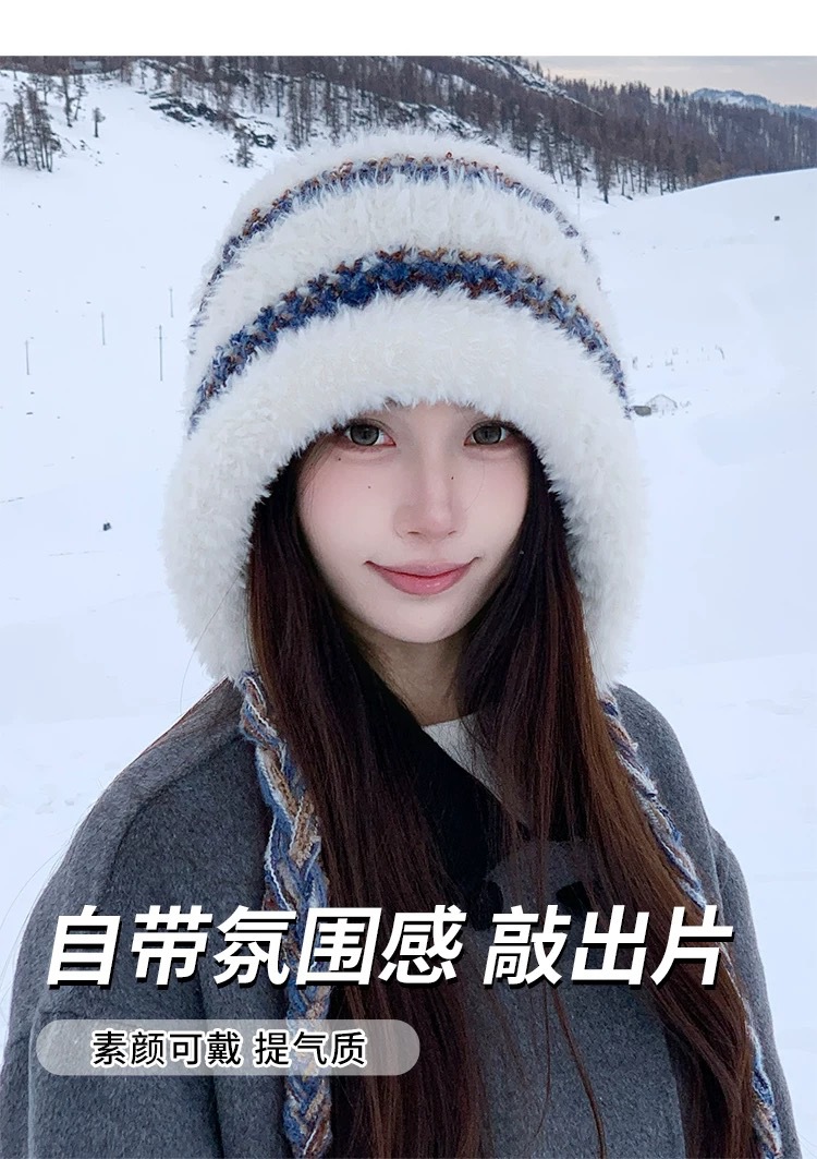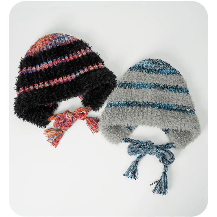 겨울 신상품 얼굴을 작아 보이게 하는 다용도 니트 풀오버 모자 여성용 방한 보온 귀 보호 스트랩 사이클링 모직 모자 대량 판매