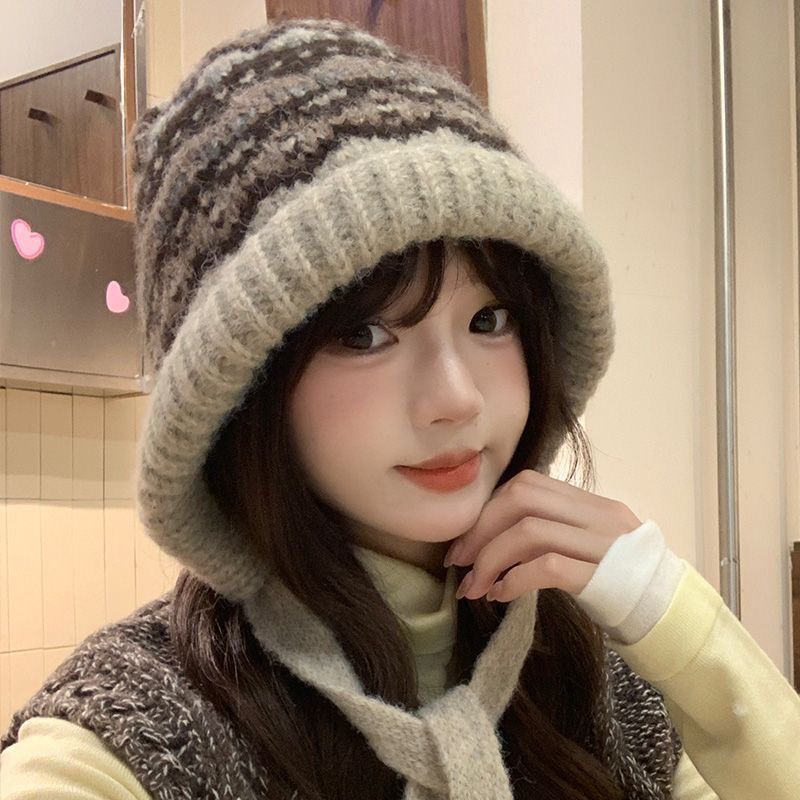 겨울 신상품 얼굴을 작아 보이게 하는 다용도 니트 풀오버 모자 여성용 방한 보온 귀 보호 스트랩 사이클링 모직 모자 대량 판매스토어 가기