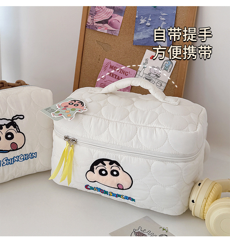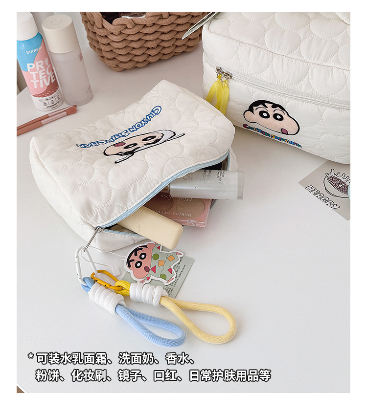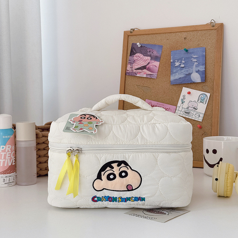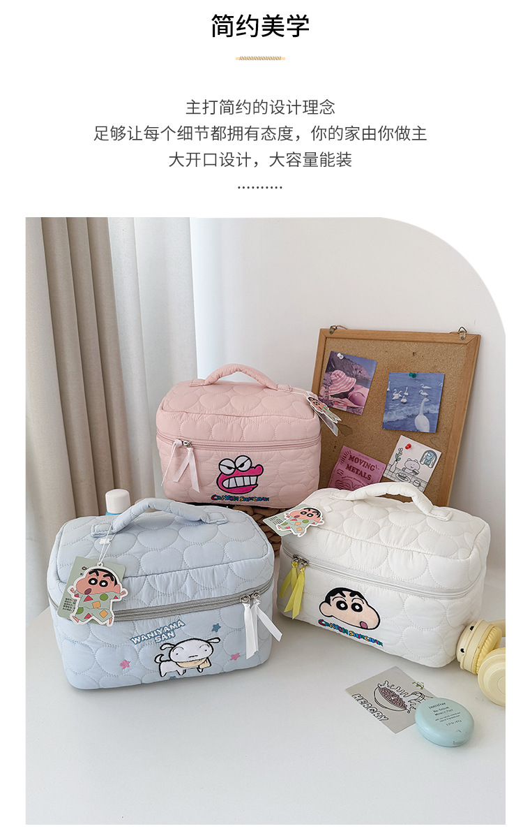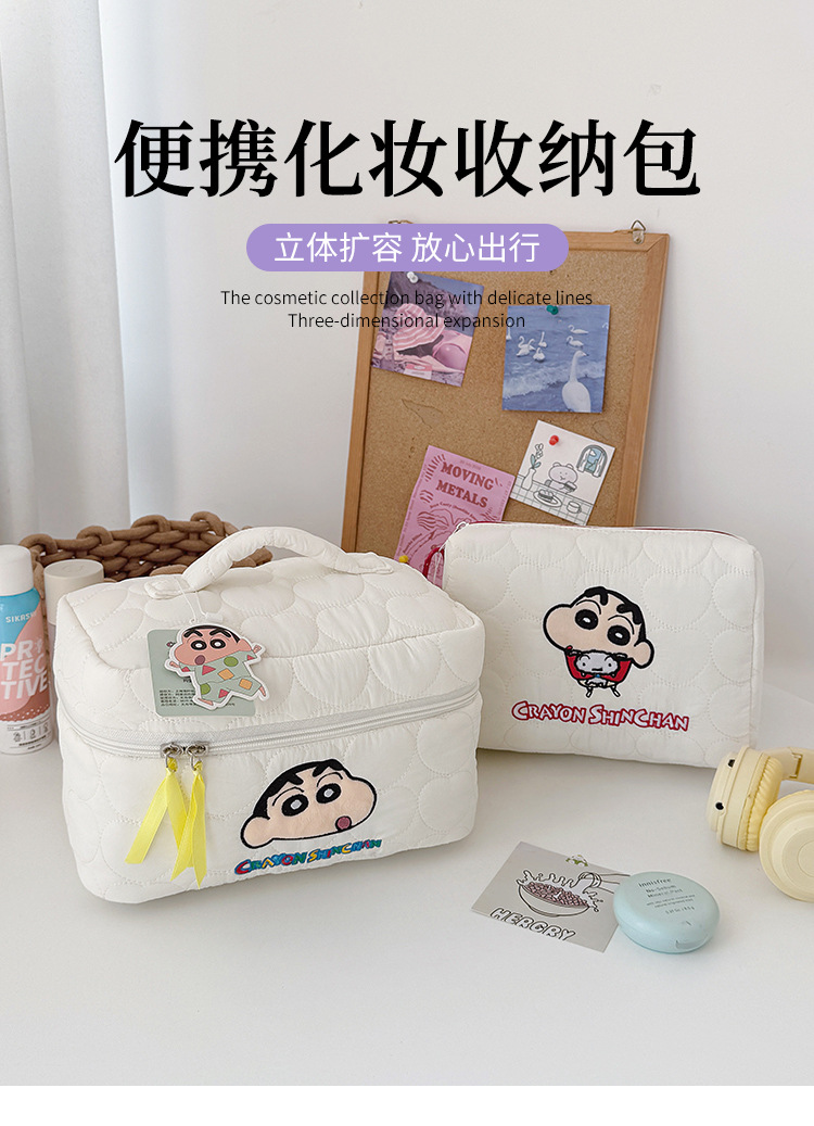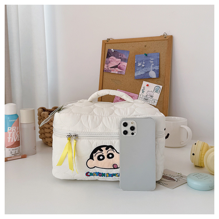 크레용 신짱 소프트 다운 화장품 가방 귀여운 만화 작은 흰색 귀여운 소녀 하트 휴대용 여행용 수납 가방스토어 가기