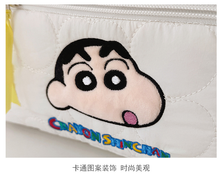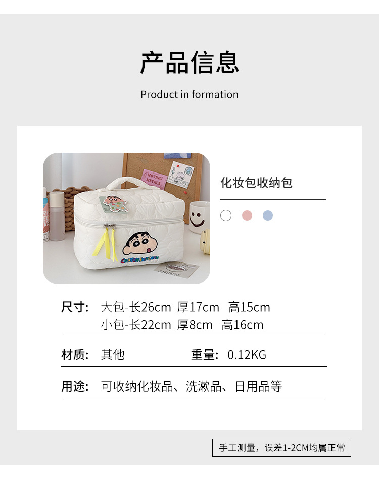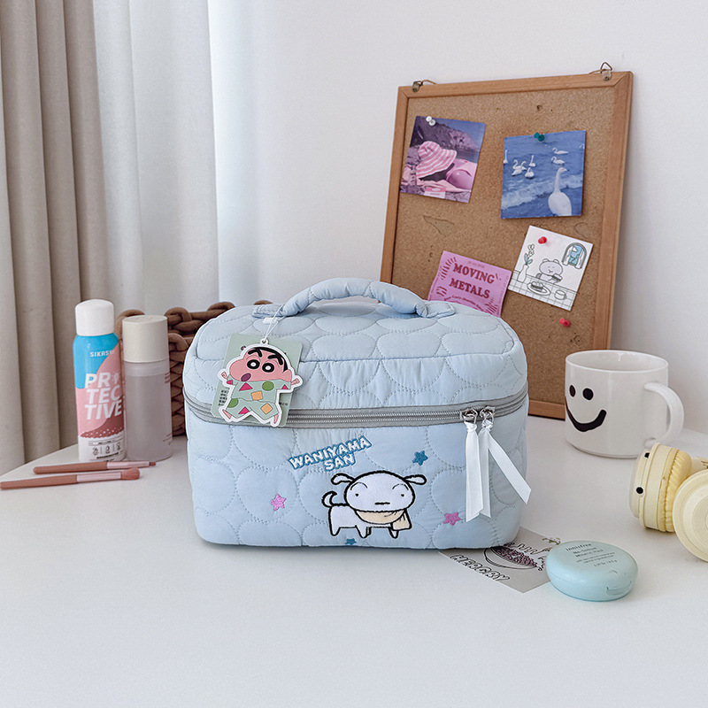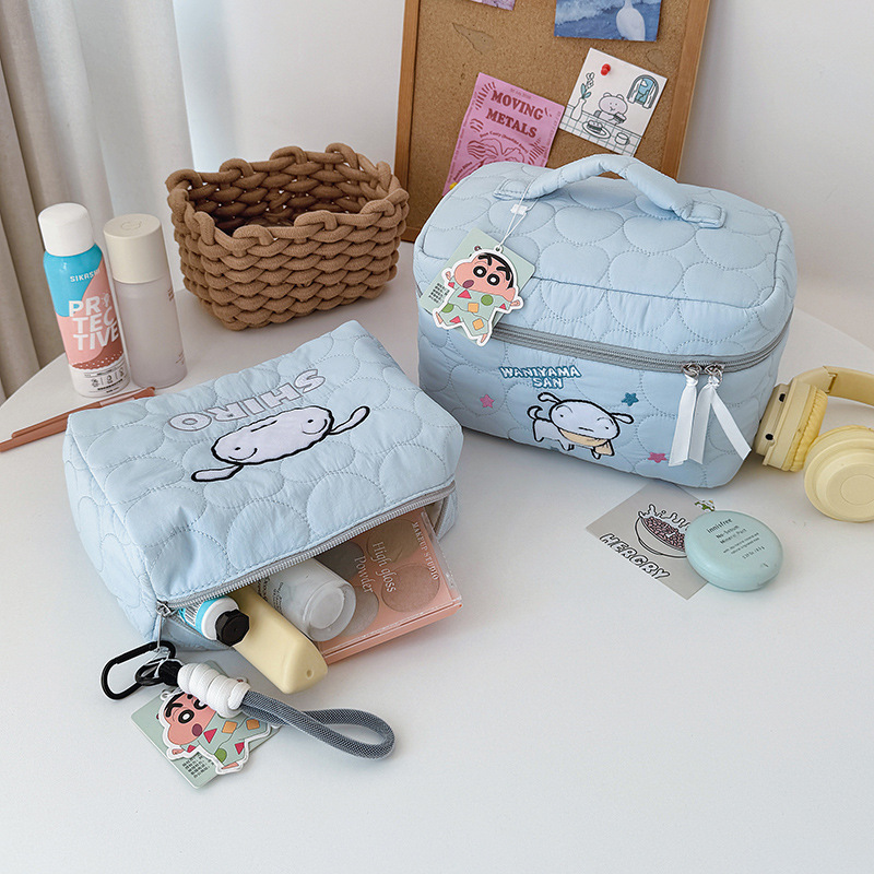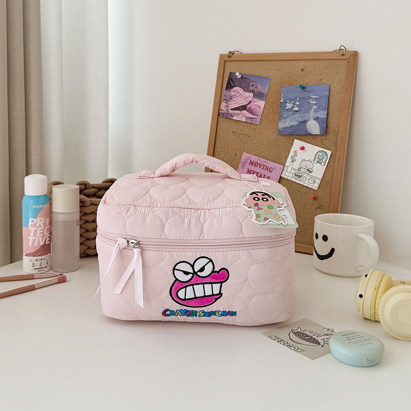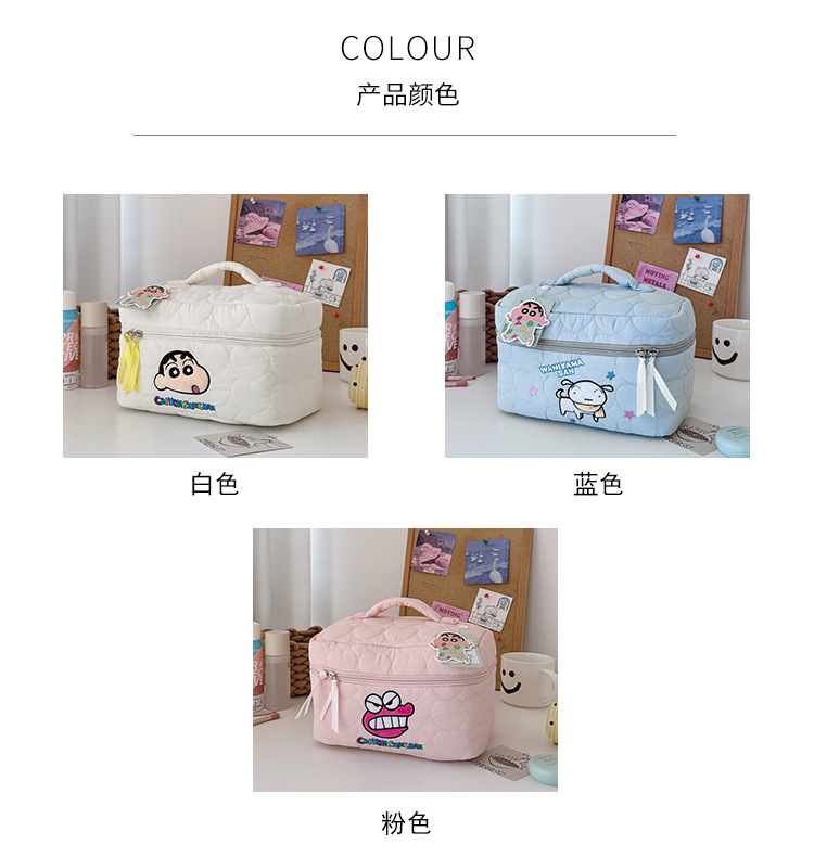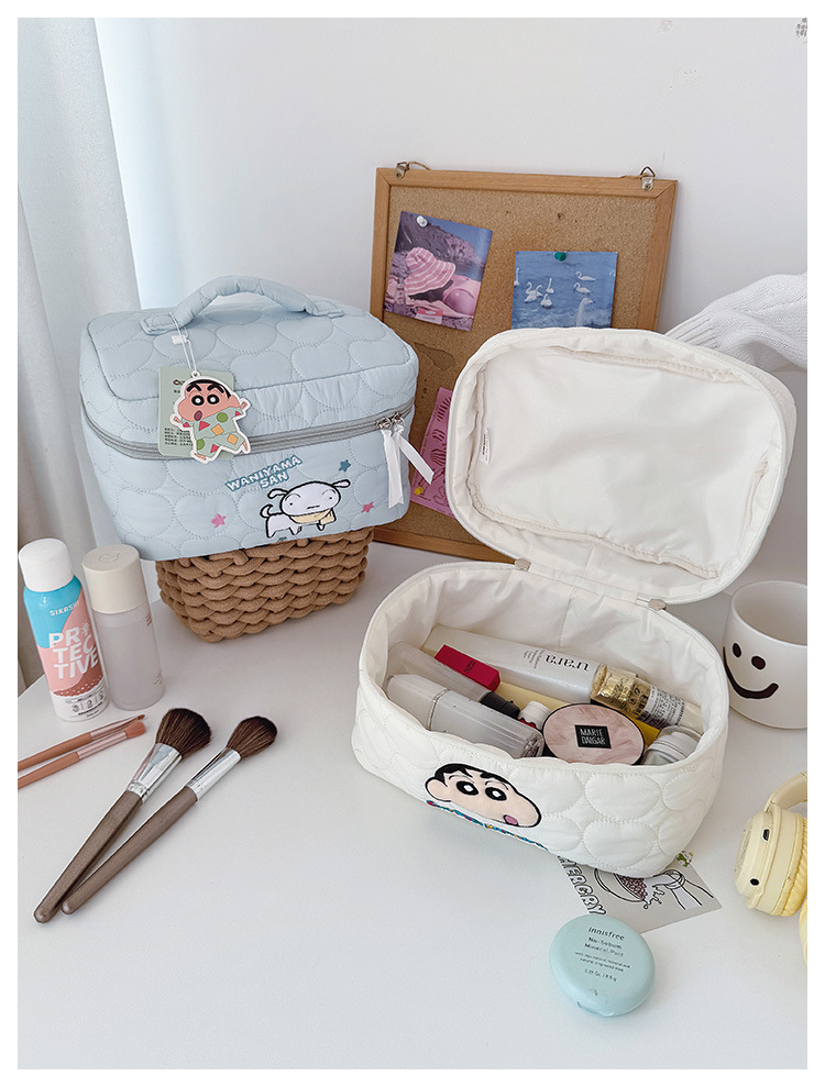 크레용 신짱 소프트 다운 화장품 가방 귀여운 만화 작은 흰색 귀여운 소녀 하트 휴대용 여행용 수납 가방스토어 가기