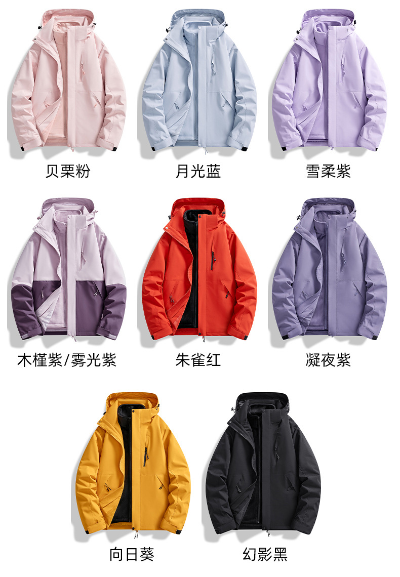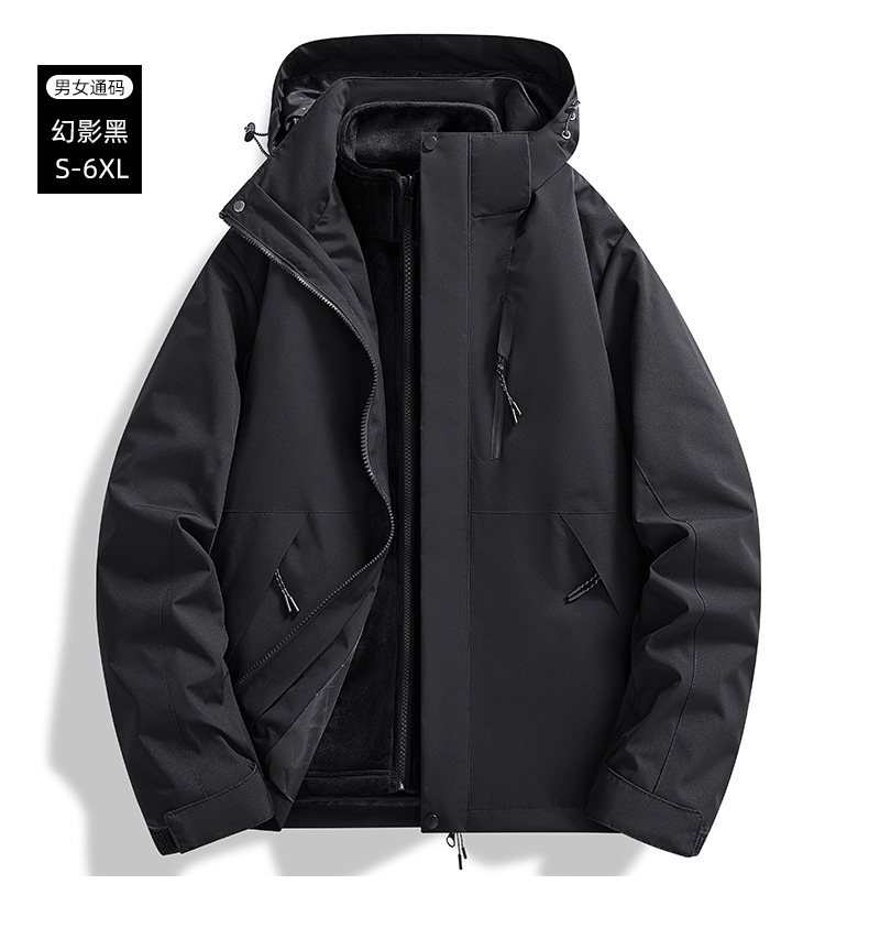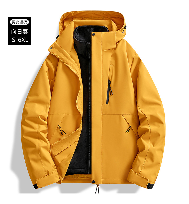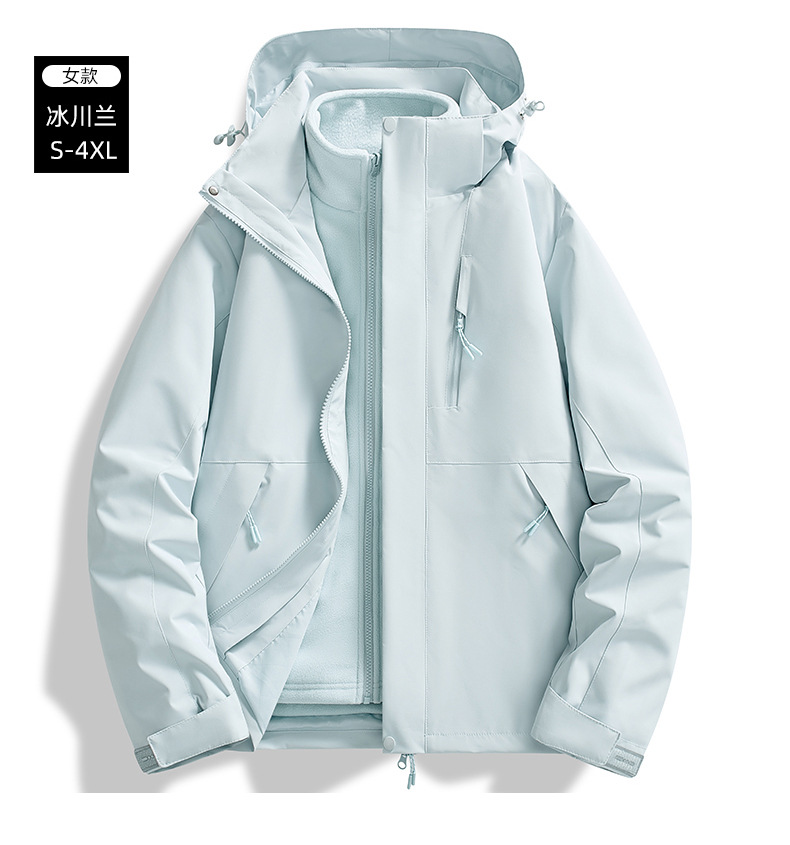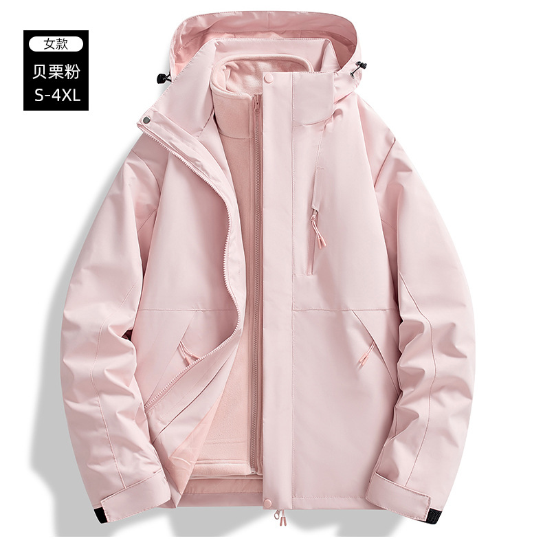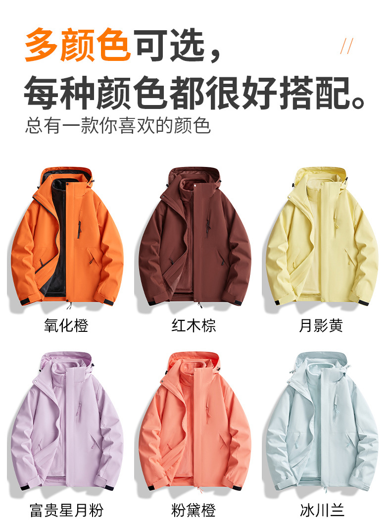 브랜드 같은 스타일의 재킷, 남성용 및 여성용 3-in-1 탈착식 라이너, 야외 등산복, 방풍 및 방수 투피스 세트스토어 가기