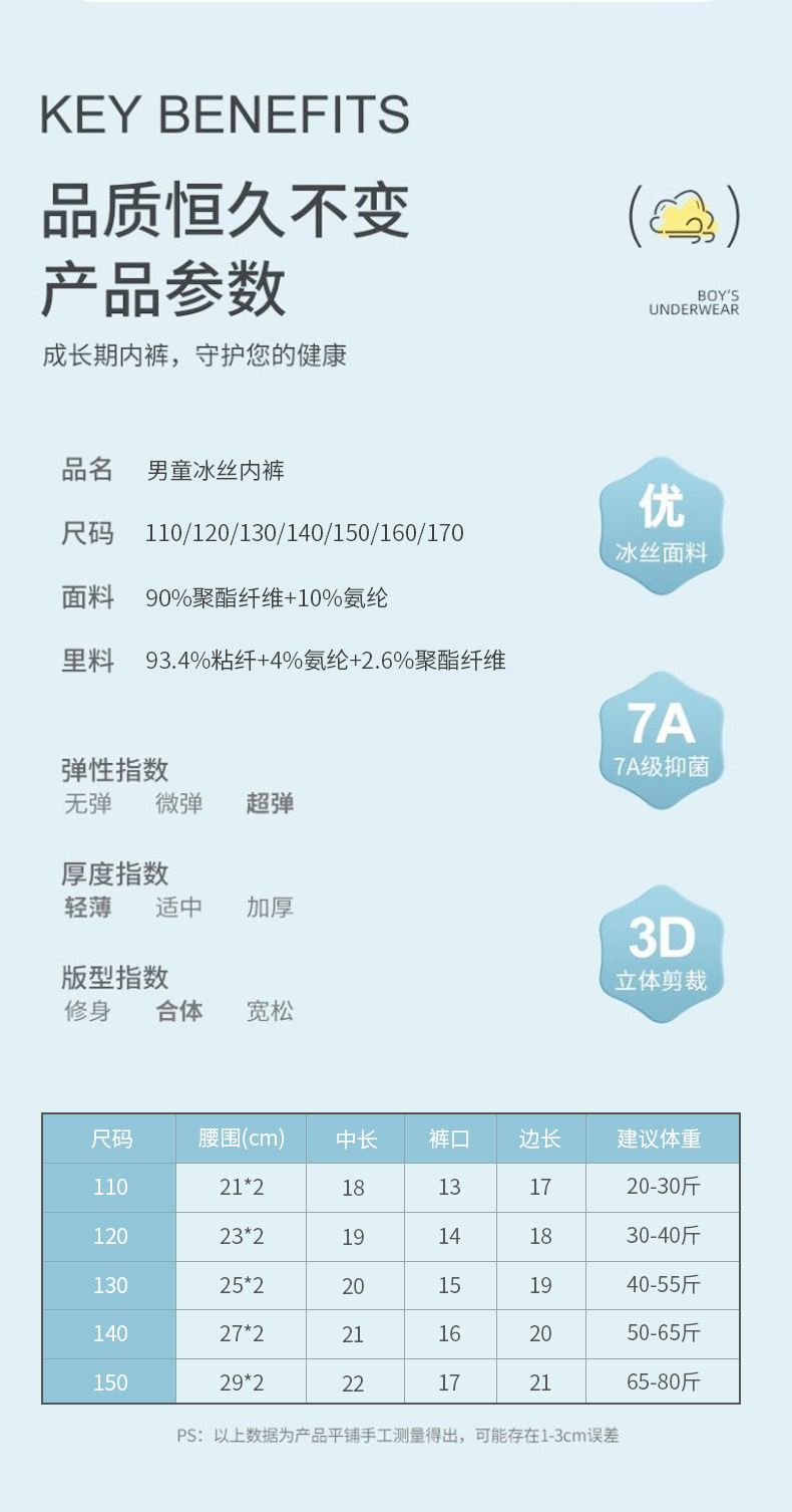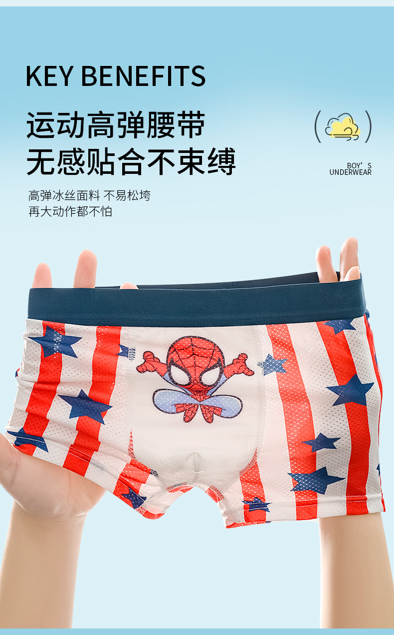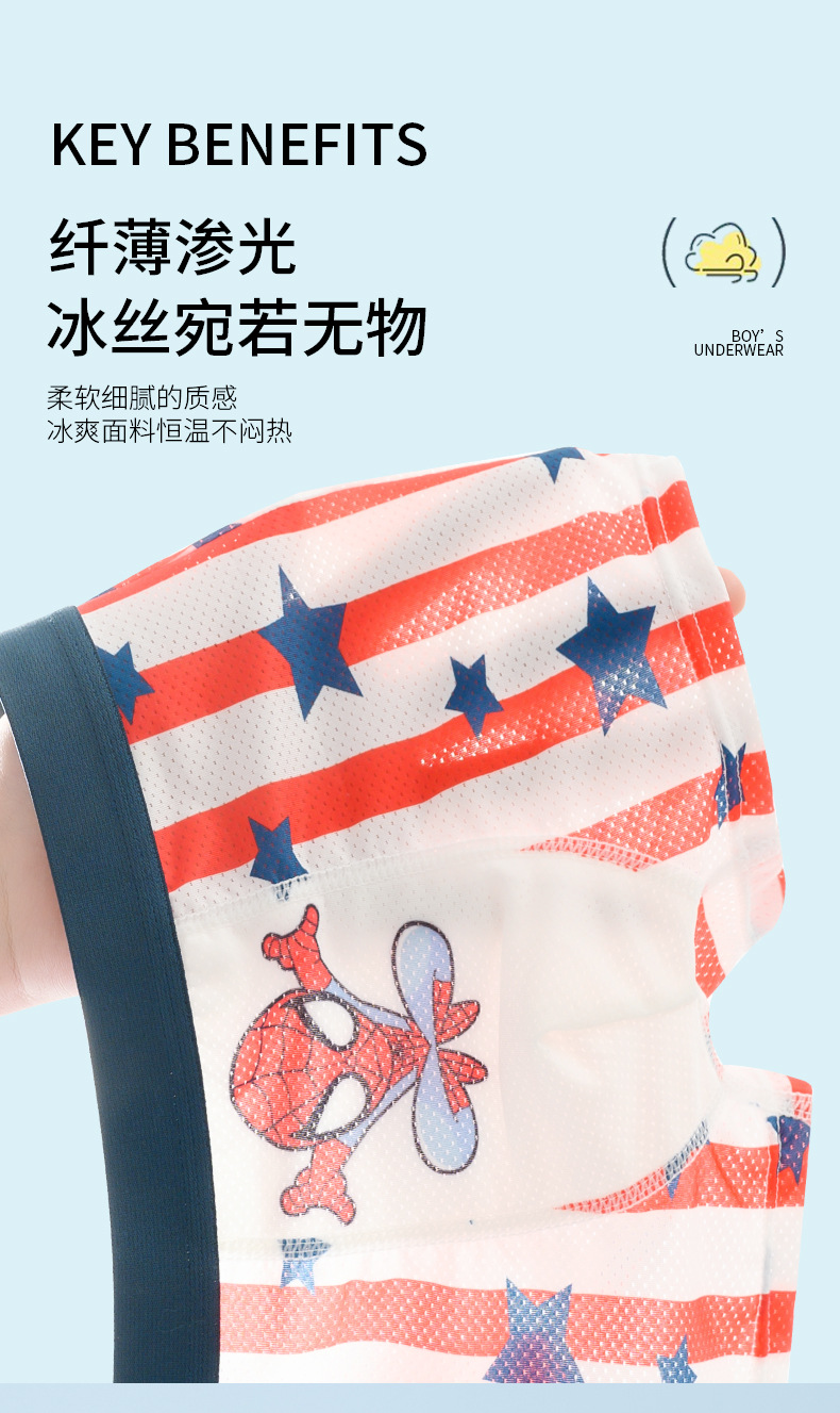 여름용 얇은 아이스 실크 메쉬 남아 팬티, 사각팬티, 중대형 어린이용, 어린 남자아이용 속옷, 가볍고 외출복으로도 착용 가능