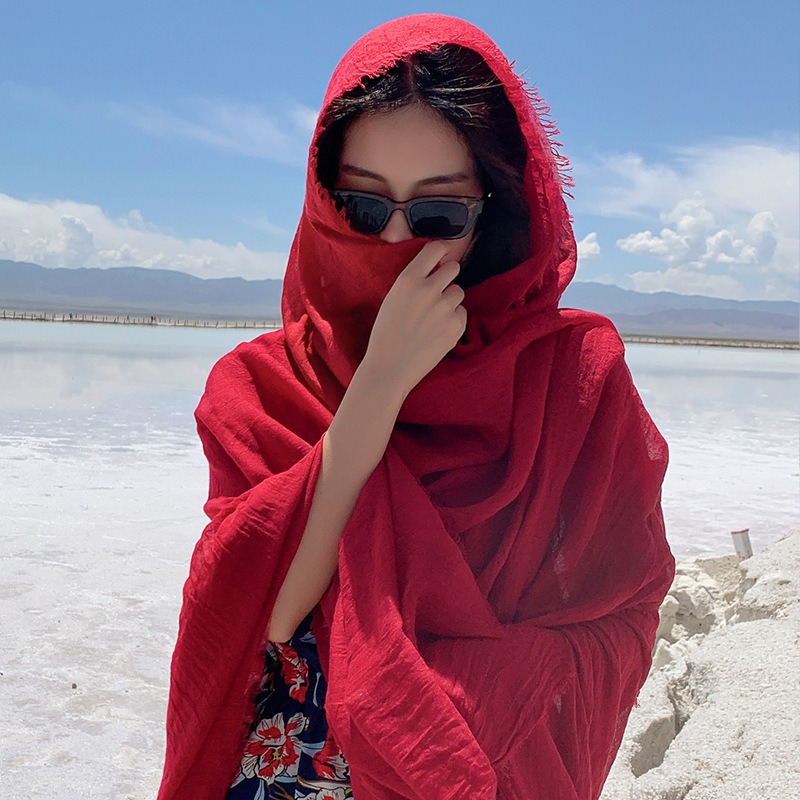여성을위한 민족 스타일 면화 및 린넨 스카프 가을, 겨울 따뜻한 긴 실크 스카프 2025 여름 새로운 스타일 에어컨 룸 외부 목도리스토어 가기
