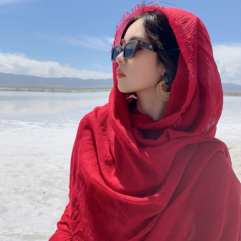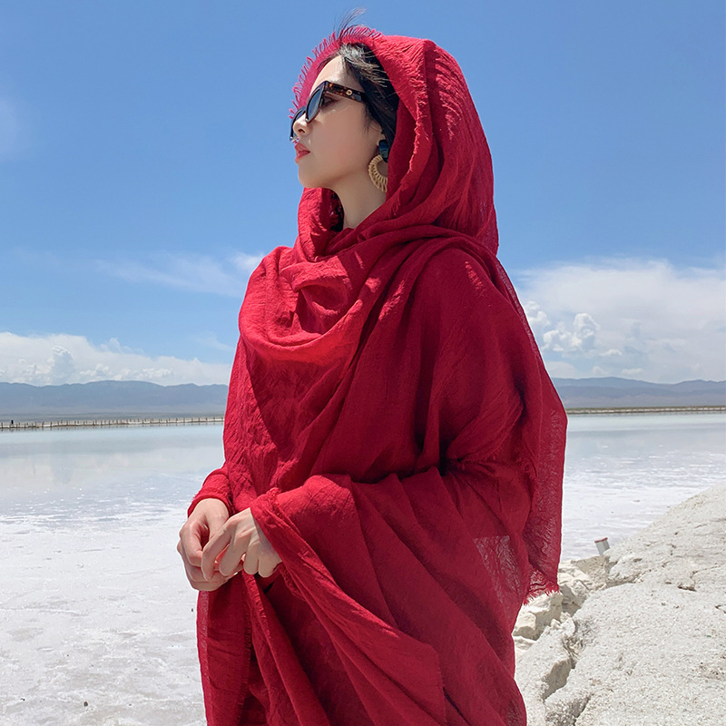 여성을위한 민족 스타일 면화 및 린넨 스카프 가을, 겨울 따뜻한 긴 실크 스카프 2025 여름 새로운 스타일 에어컨 룸 외부 목도리