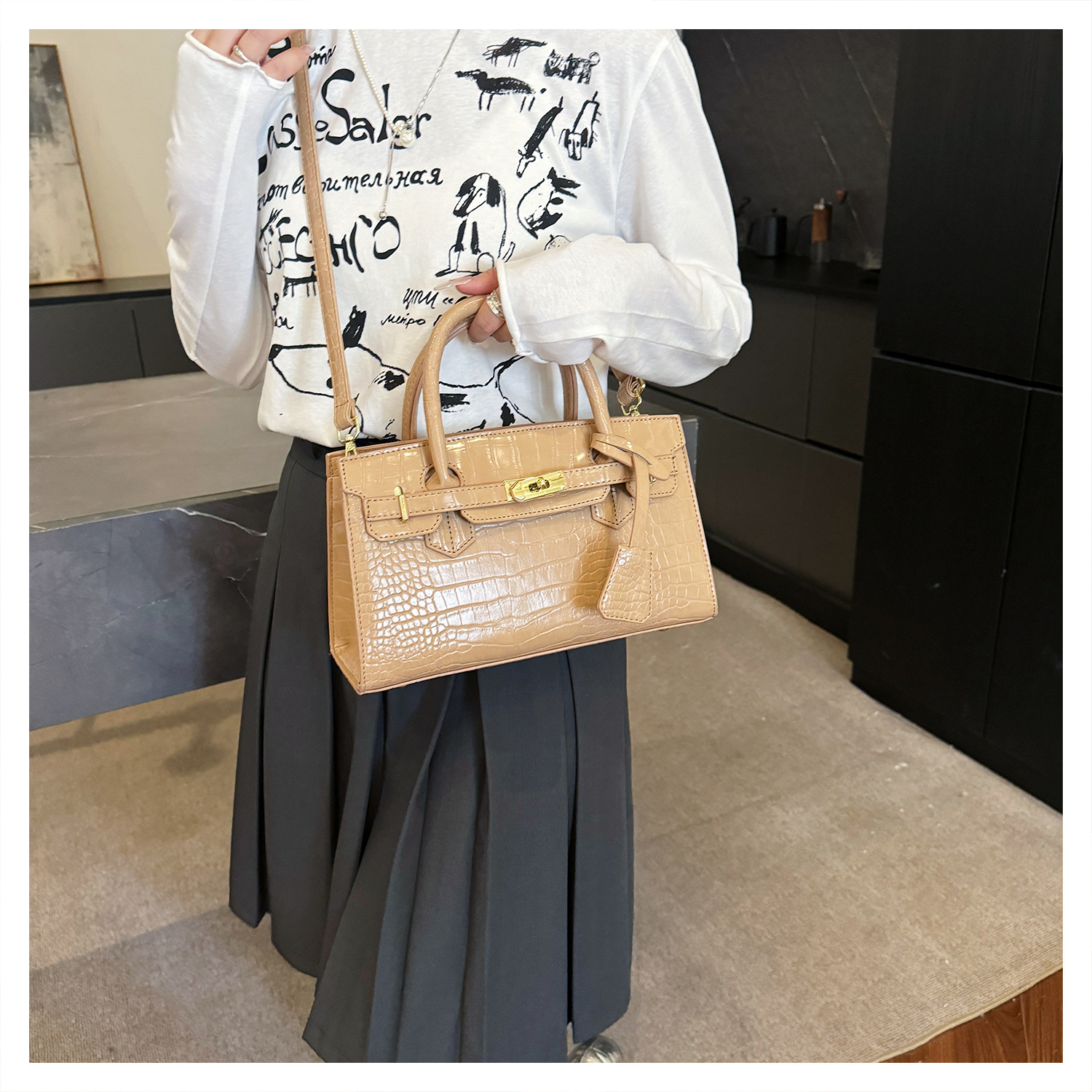 대외 무역 패션 악어 패턴 켈리 가방 여성 2025 새로운 유럽과 미국의 핸드백 유행 빛 럭셔리 백금 가방 크로스 바디 백스토어 가기