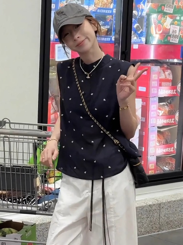 여성을위한 프랑스 복고풍 폴카 도트 라운드 넥 민소매 쉬폰 셔츠 2025 새로운 디자인 세련되고 아름다운 조끼 탑스토어 가기