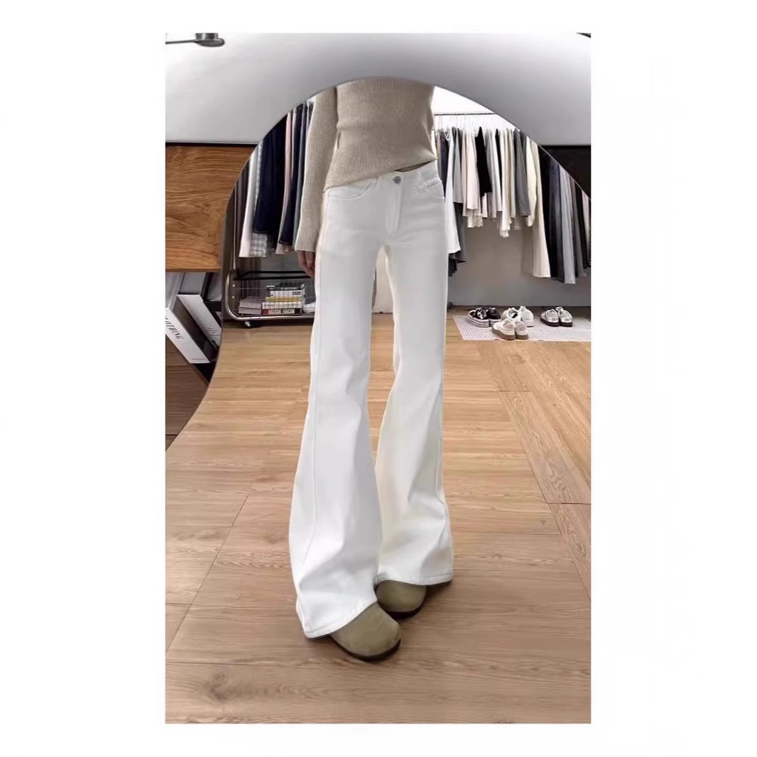 여성용 화이트 부츠컷 청바지 2025 봄 신작 작은 와이드 레그 루즈 슬리밍 플레어 팬츠