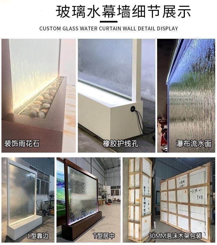 유리 워터 월 입구 파티션 워터 스크린 분수 조명 실내 입구 안뜰 장식 조경 워터 커튼 스크린스토어 가기