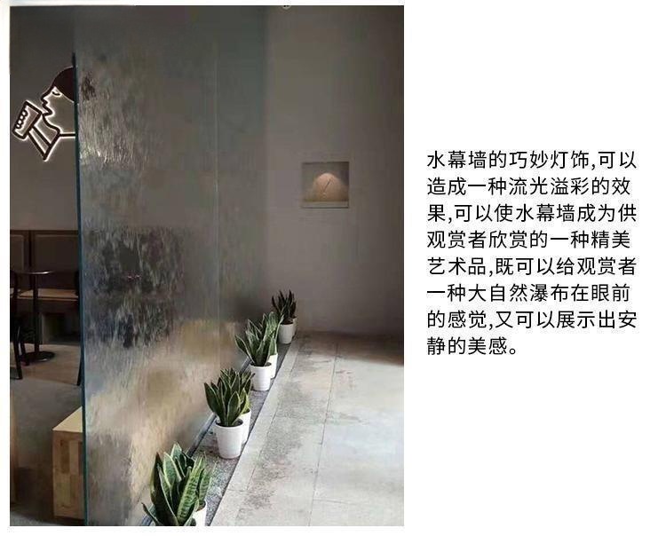 유리 워터 월 입구 파티션 워터 스크린 분수 조명 실내 입구 안뜰 장식 조경 워터 커튼 스크린